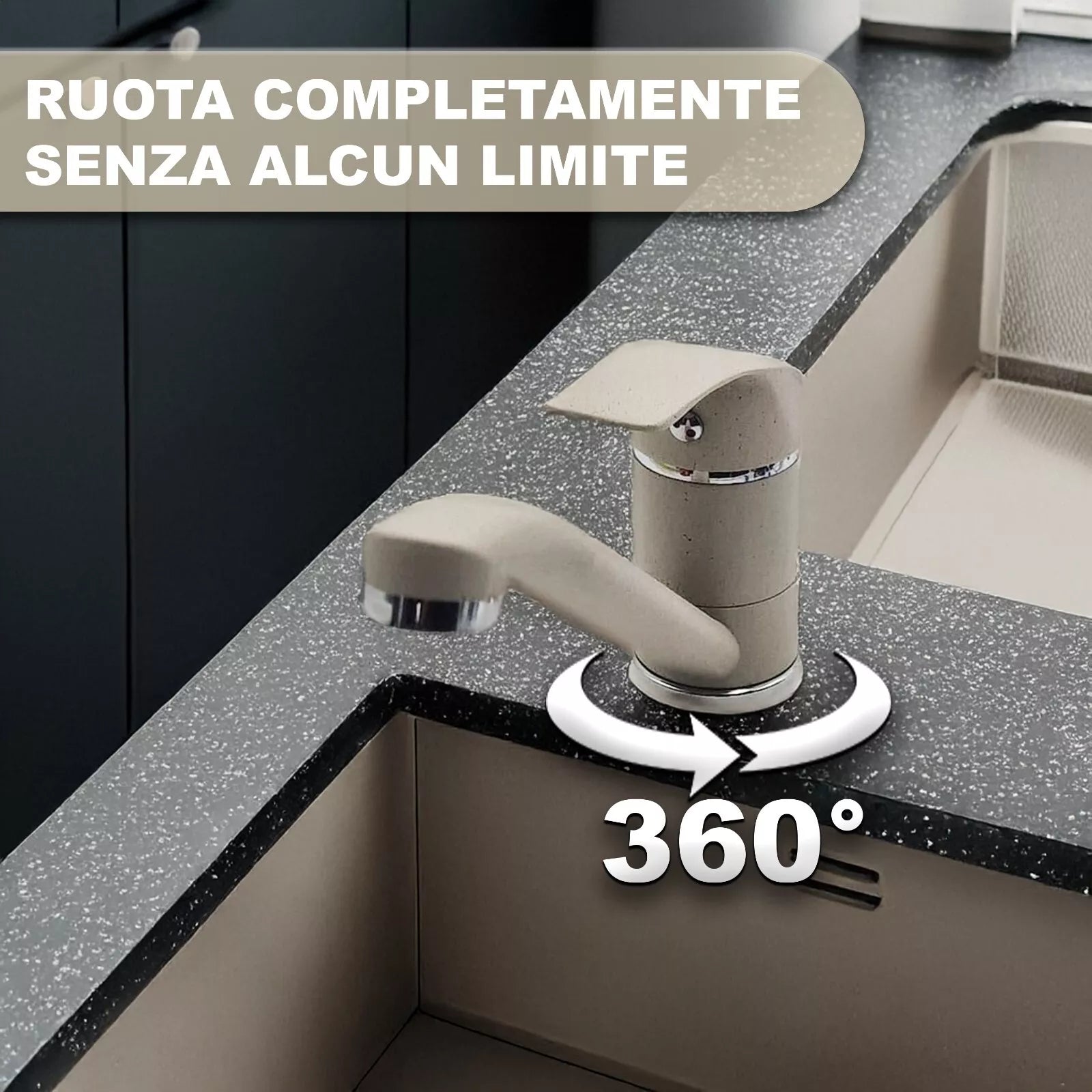 - ROTAZIONE A 360°: Il miscelatore ruota completamente, perfetto per lavabi a una o due vasche.