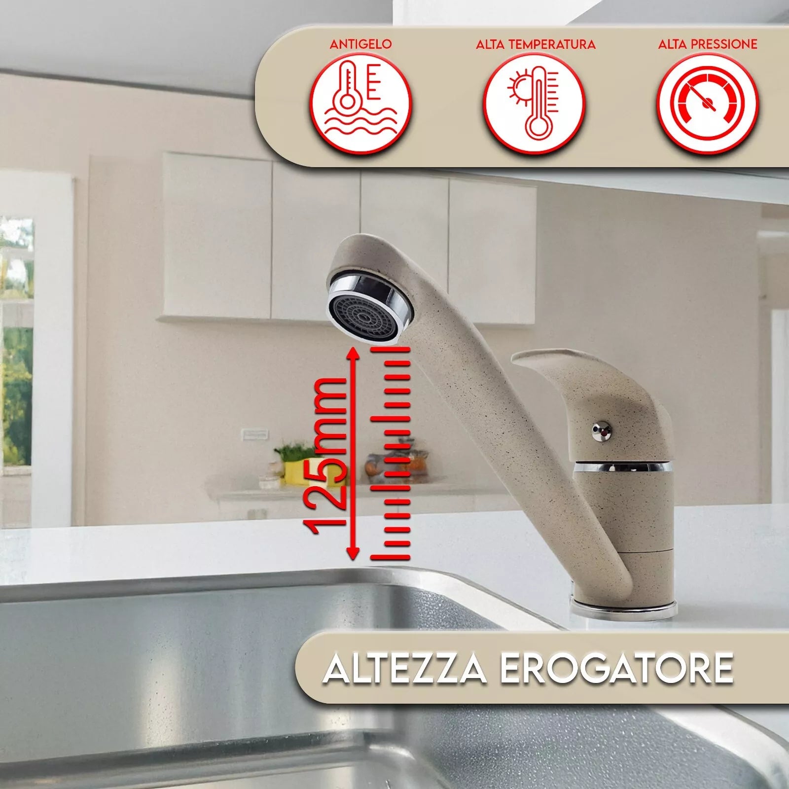 Maka Miscelatore Cucina Lavabo Fraganite Avena 12.5CM, Canna Bassa 360°