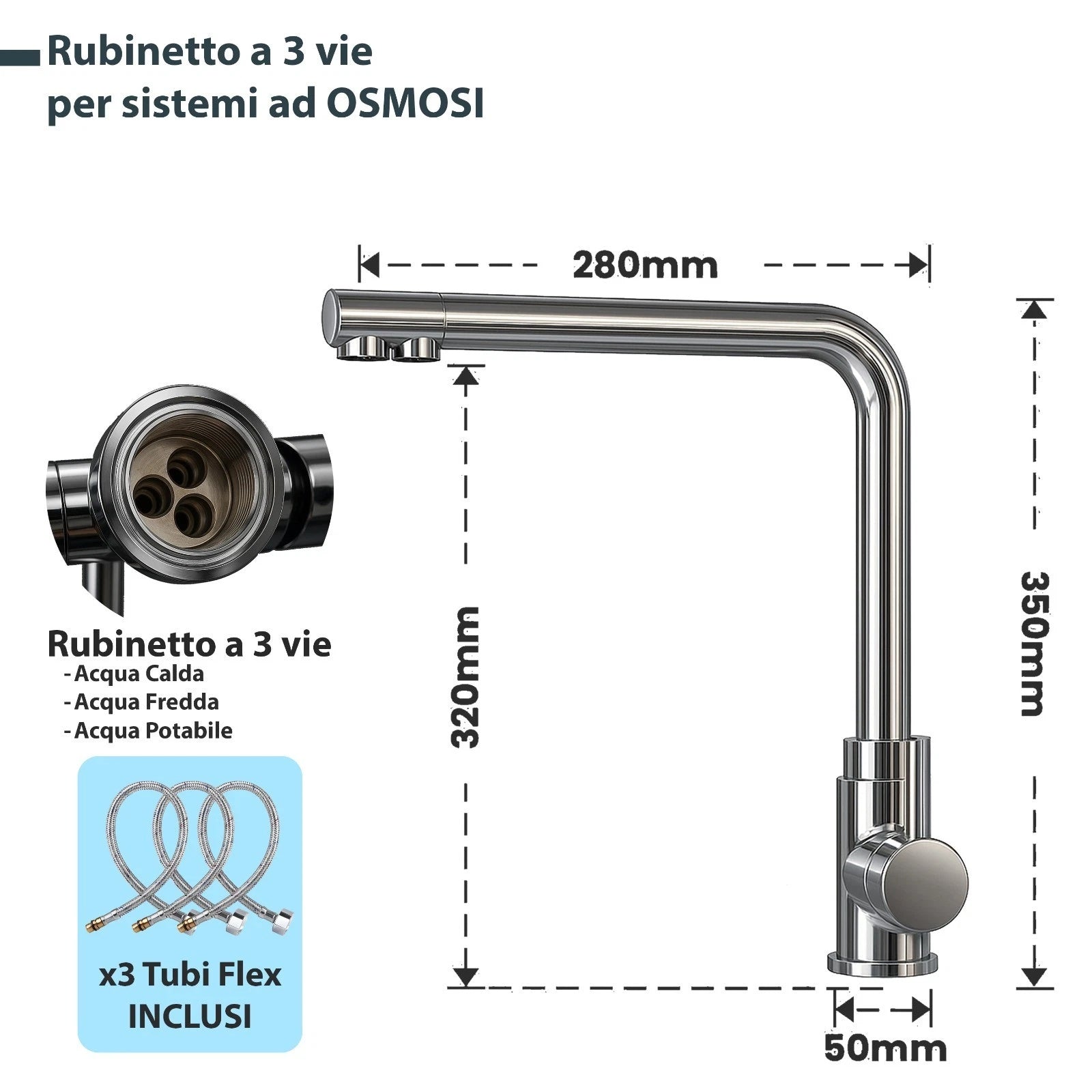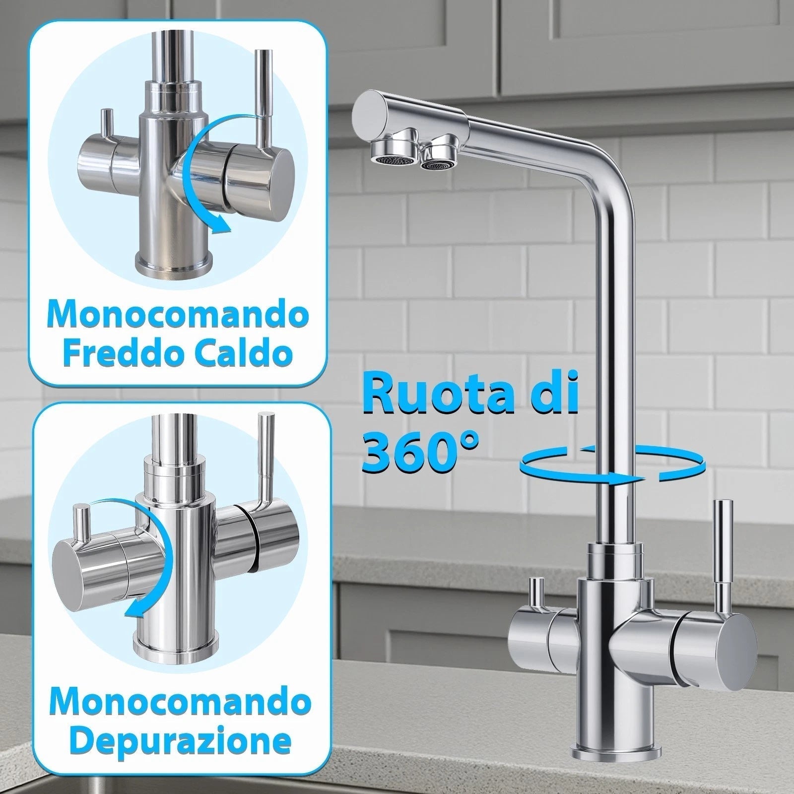 Rubinetto cucina 3 vie acqua potabile e miscelata con doppia leva