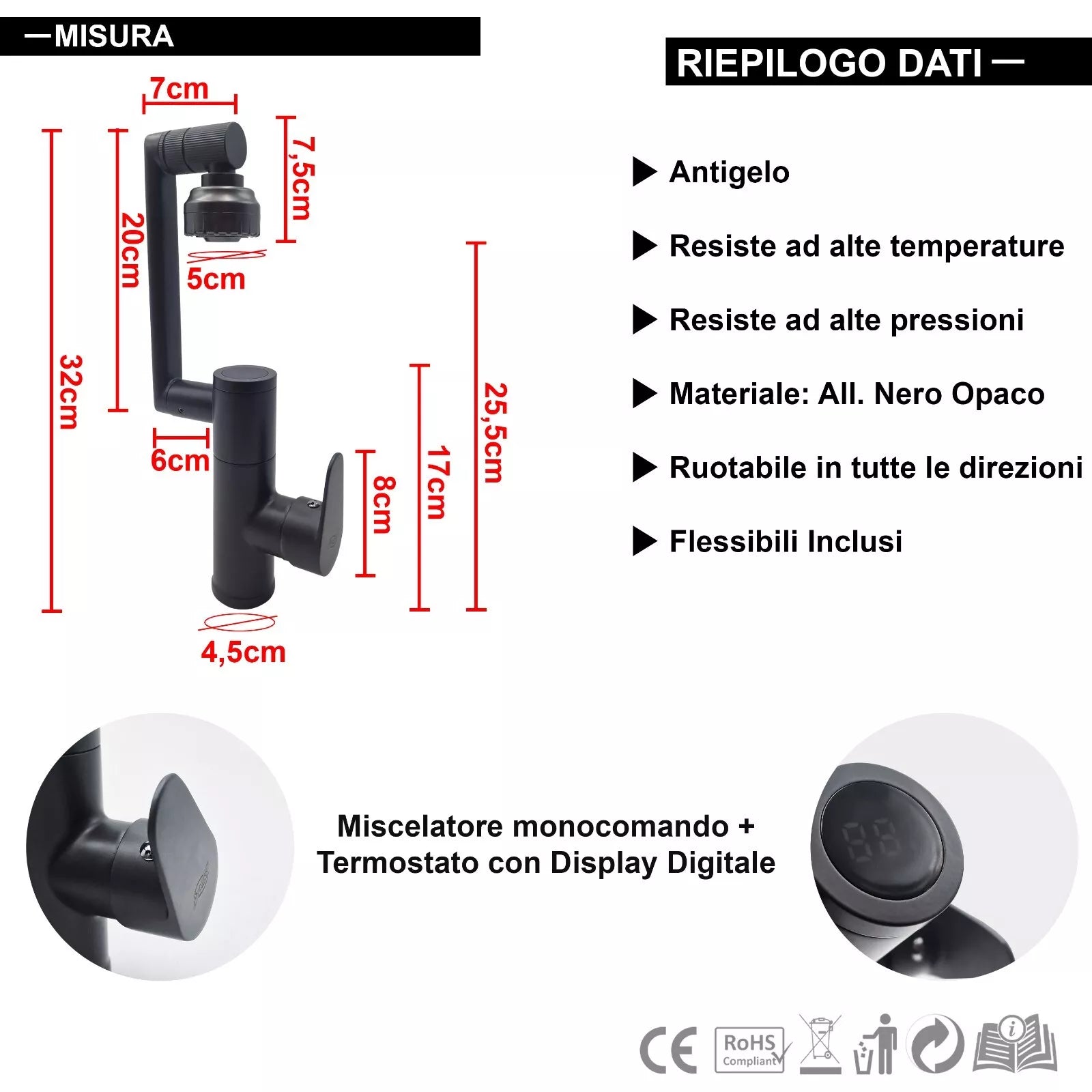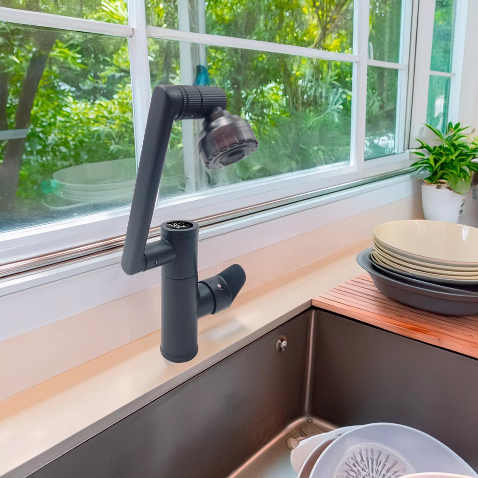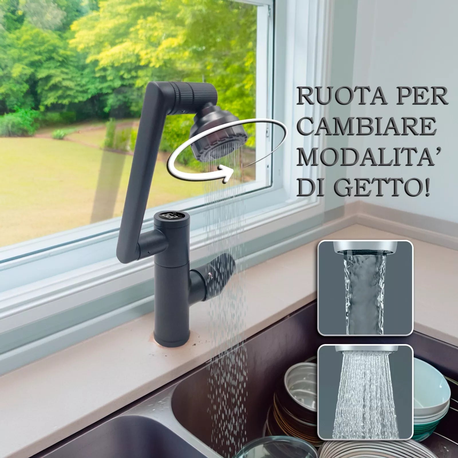 Rubinetto Miscelatore Nero Multi Rotazione con Display Digitale Temperatura