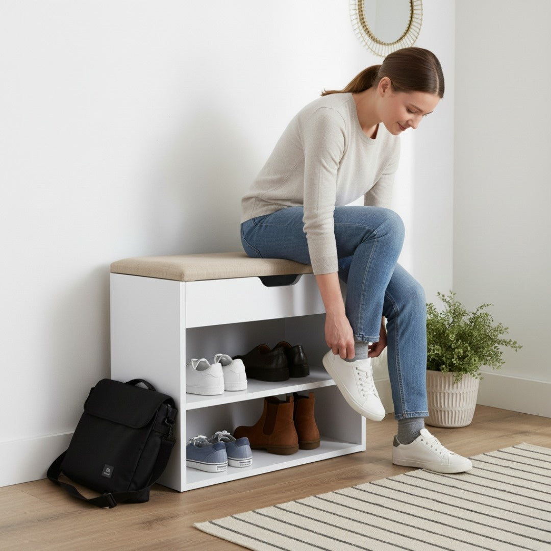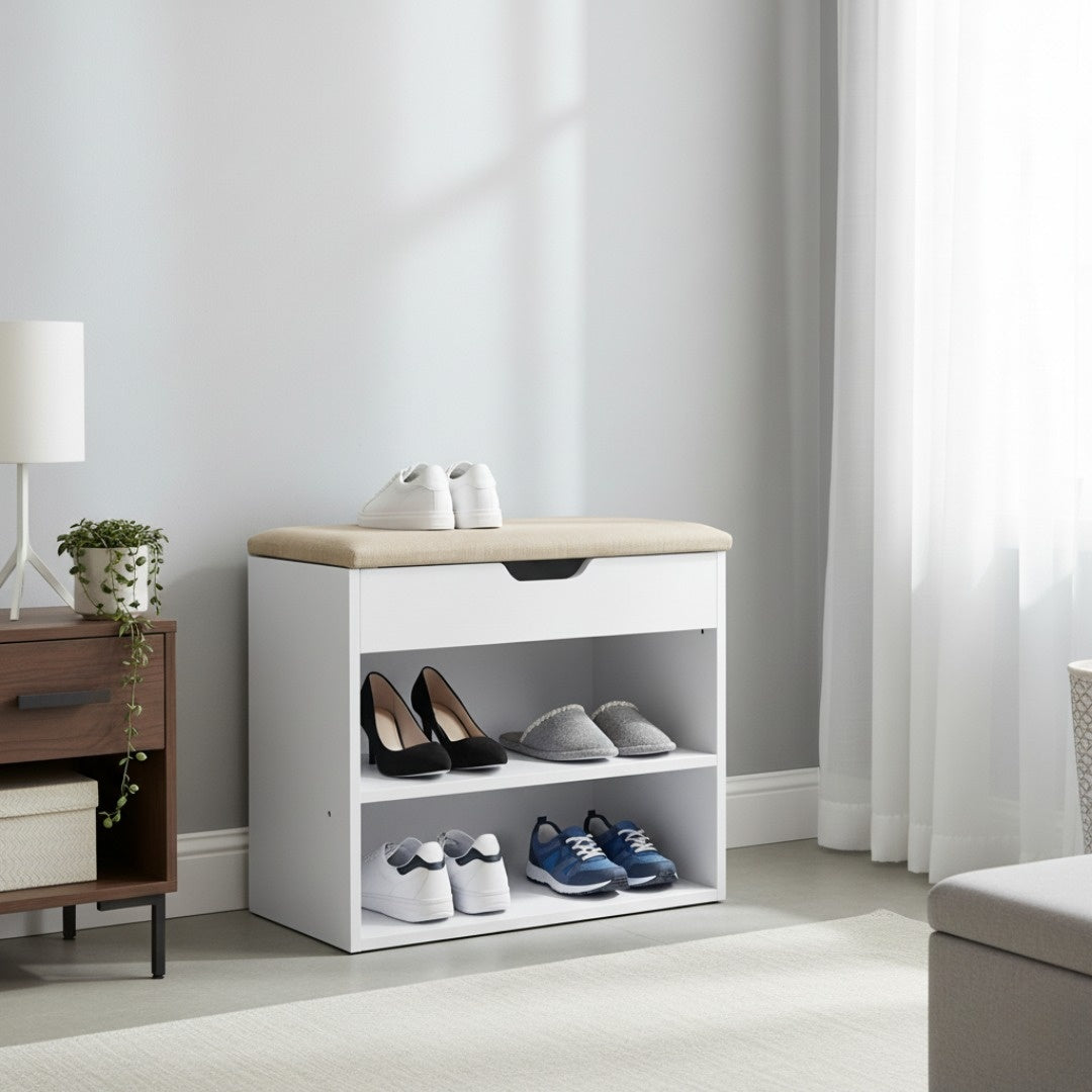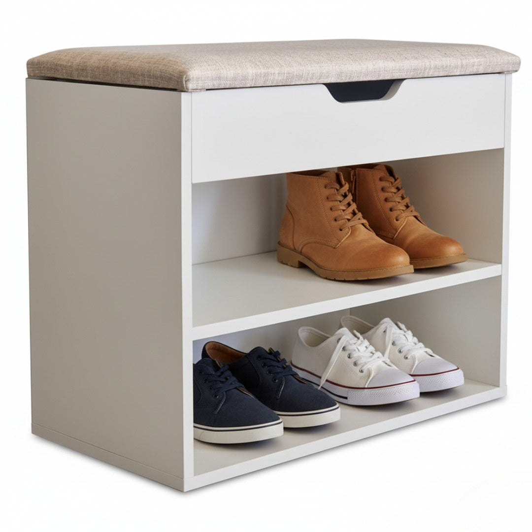 Mobiletto cassapanca scarpiera in melaminico con cuscino imbottito salvaspazio