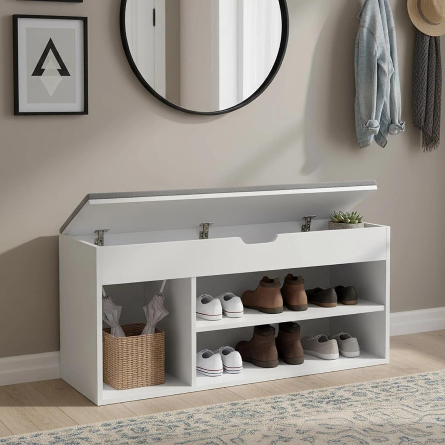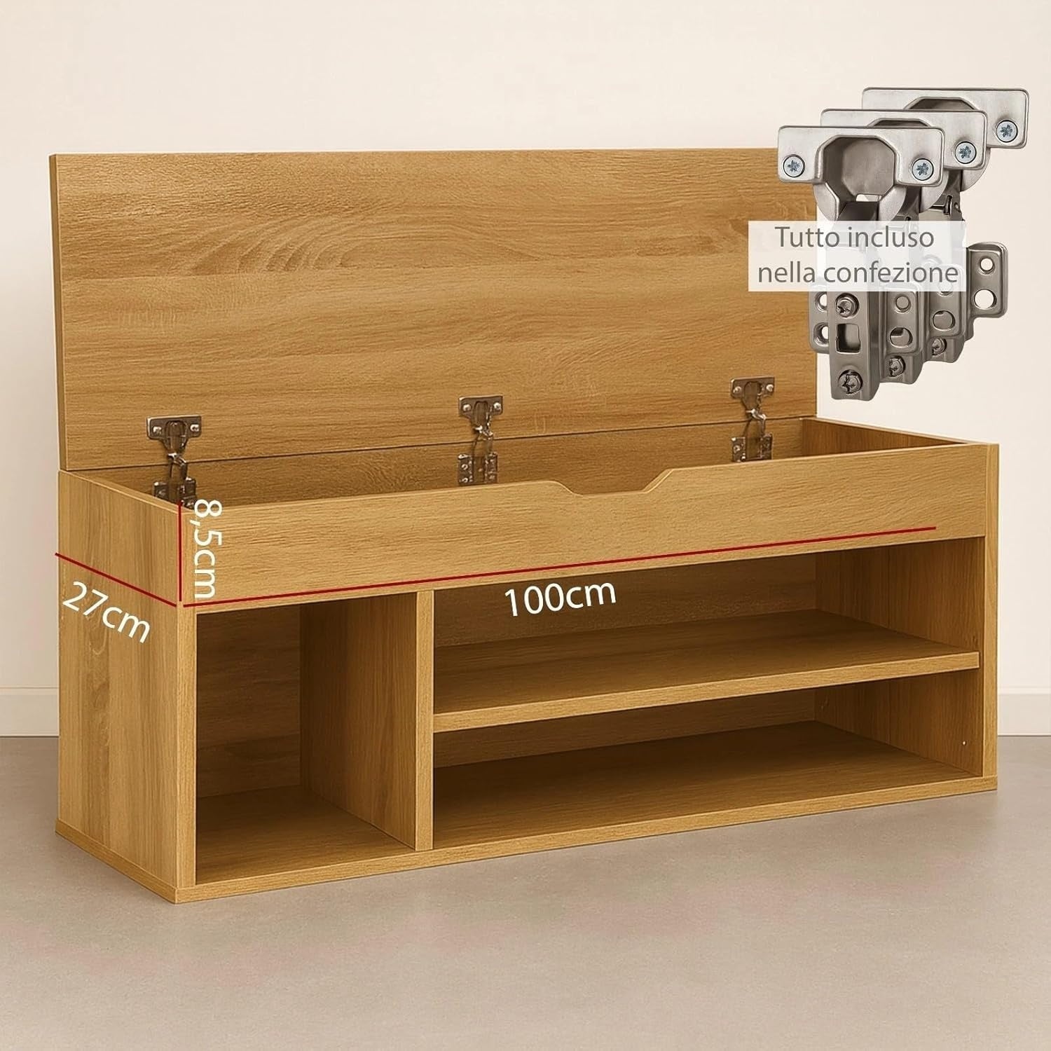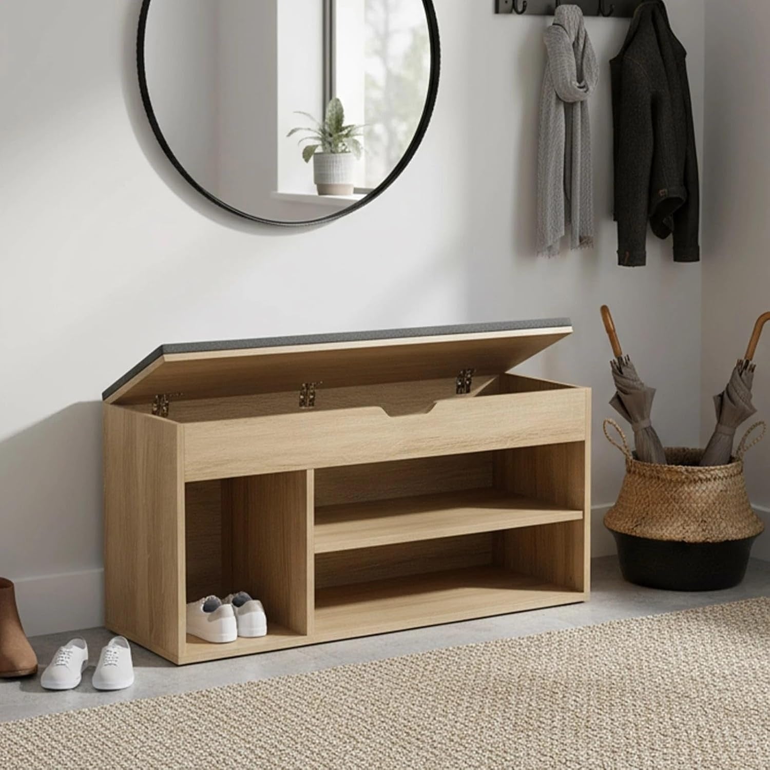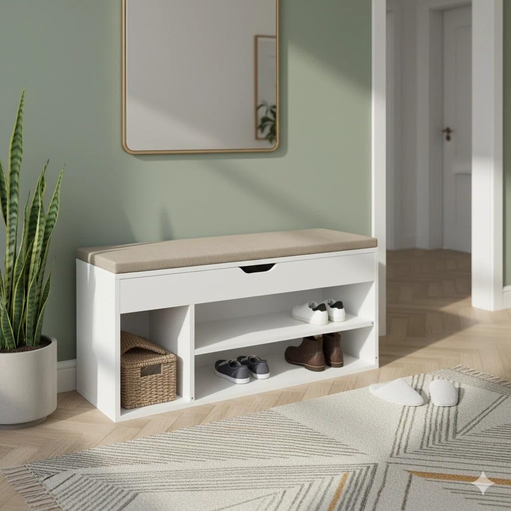 - Aggiunge comfort e ordine grazie alla seduta imbottita e ai 4 scomparti porta scarpe.