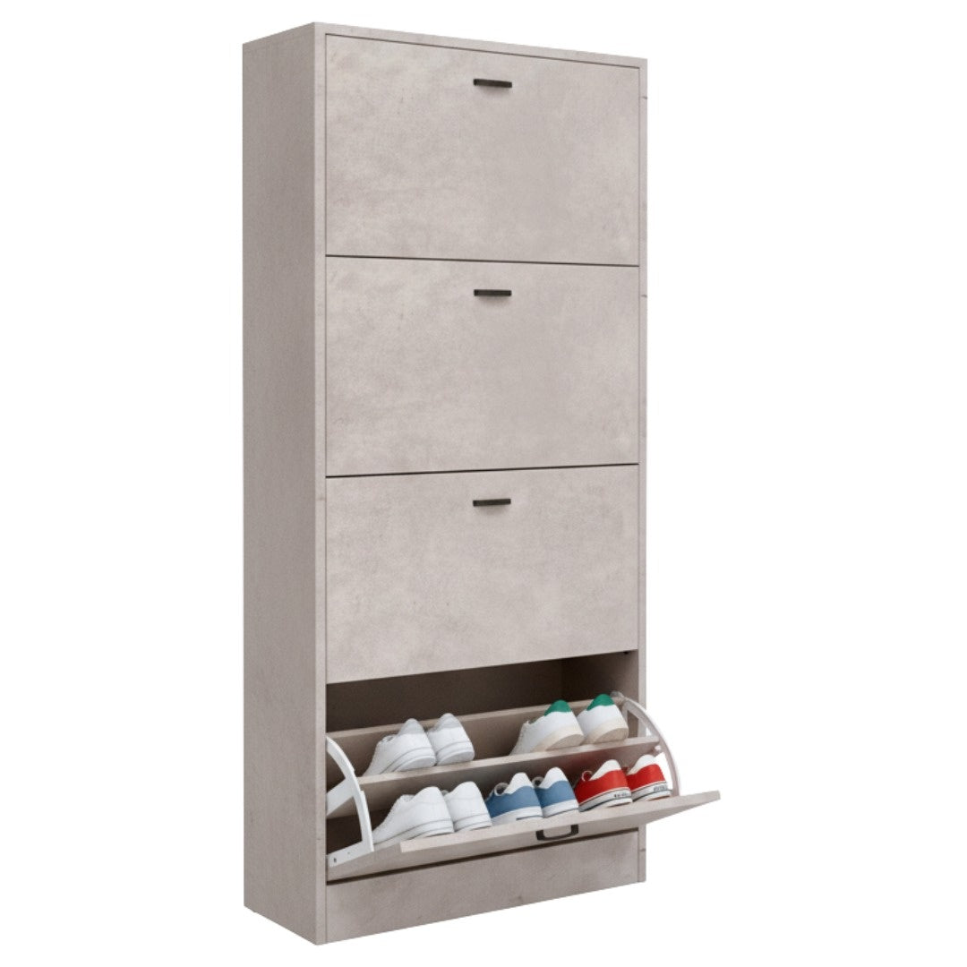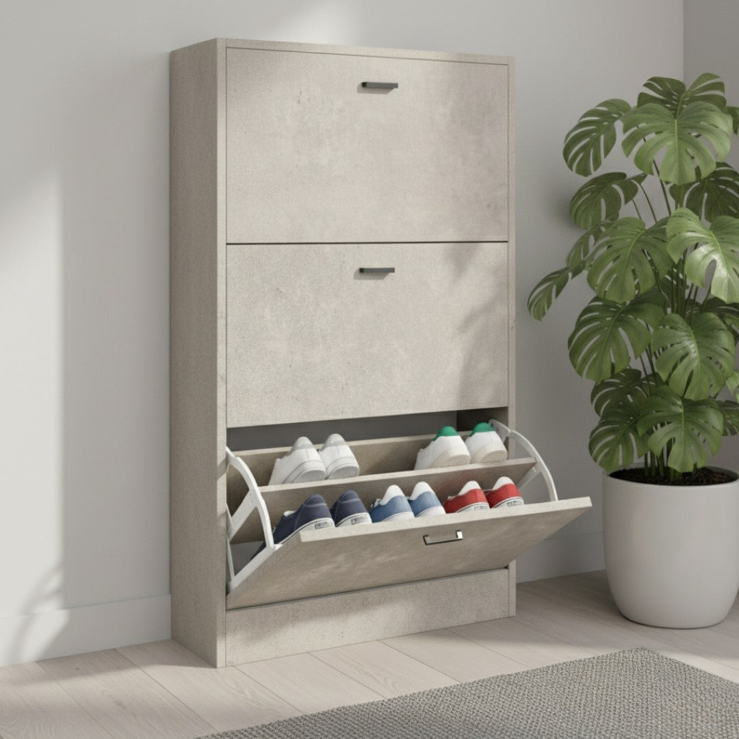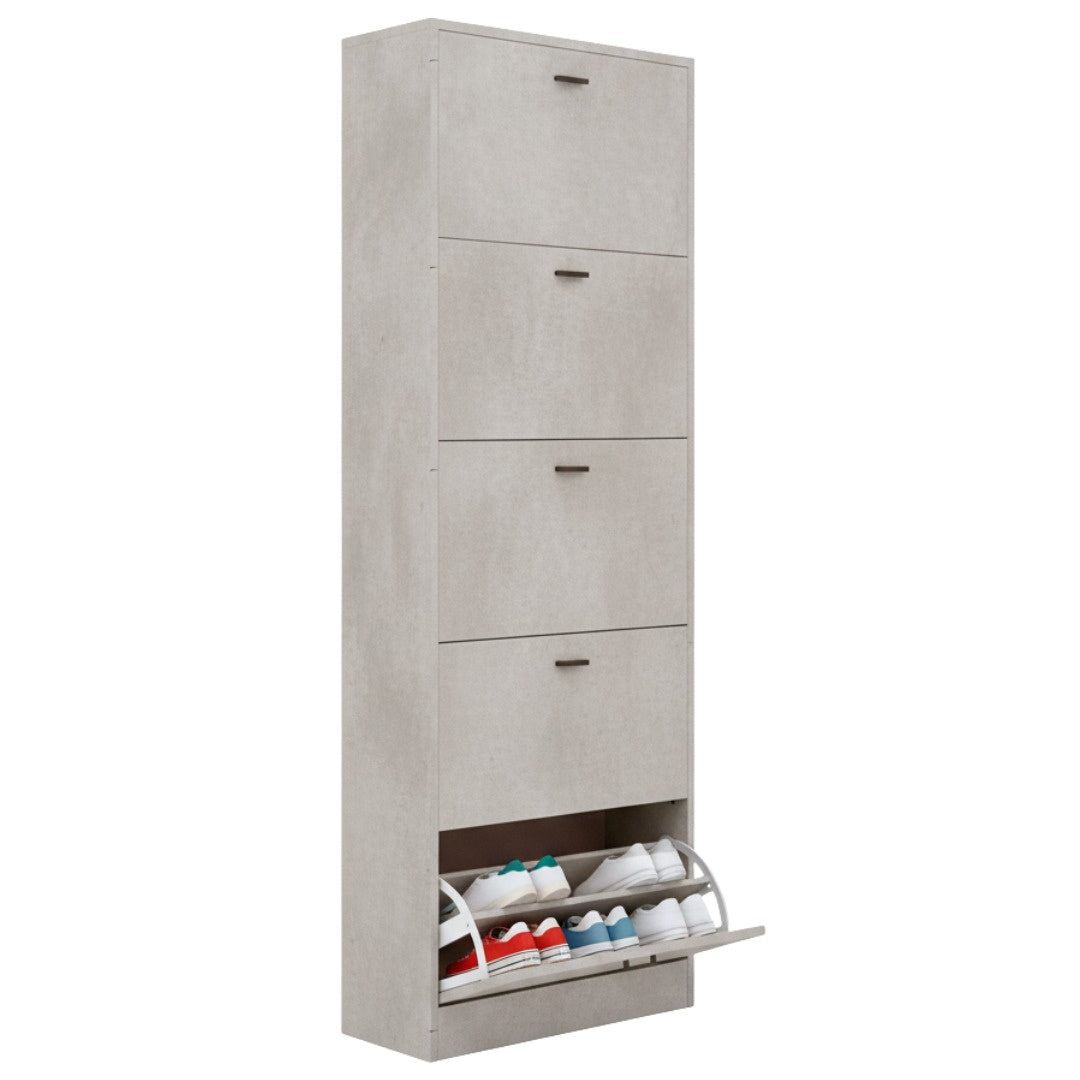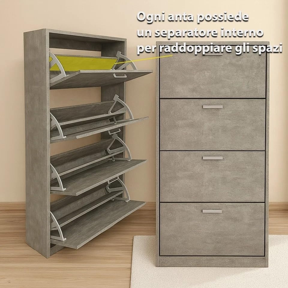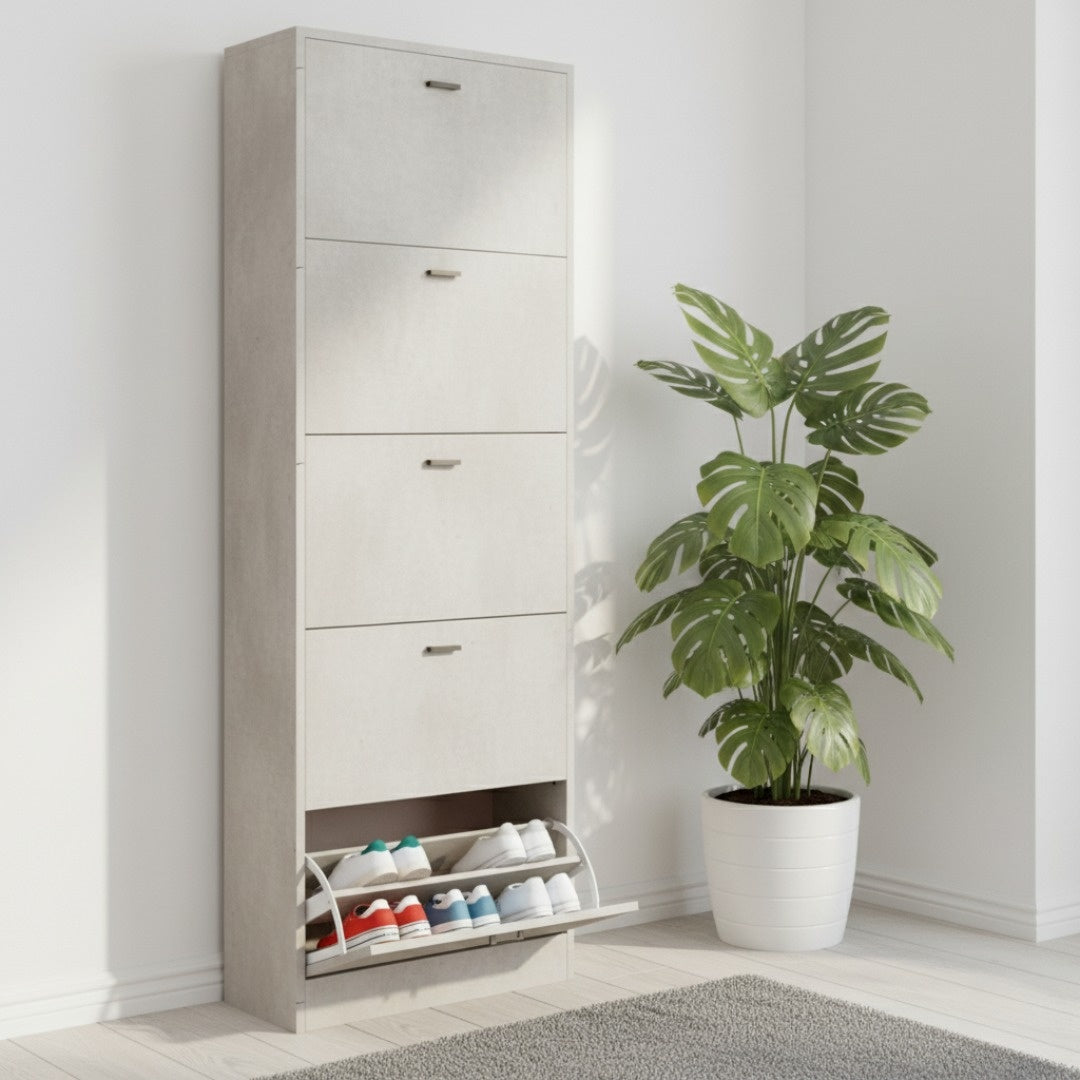 Scarpiera in MDF Melaminico 2/3/4/5 ripiani, Ante a Ribalta, Rovere Bianco Cemento
