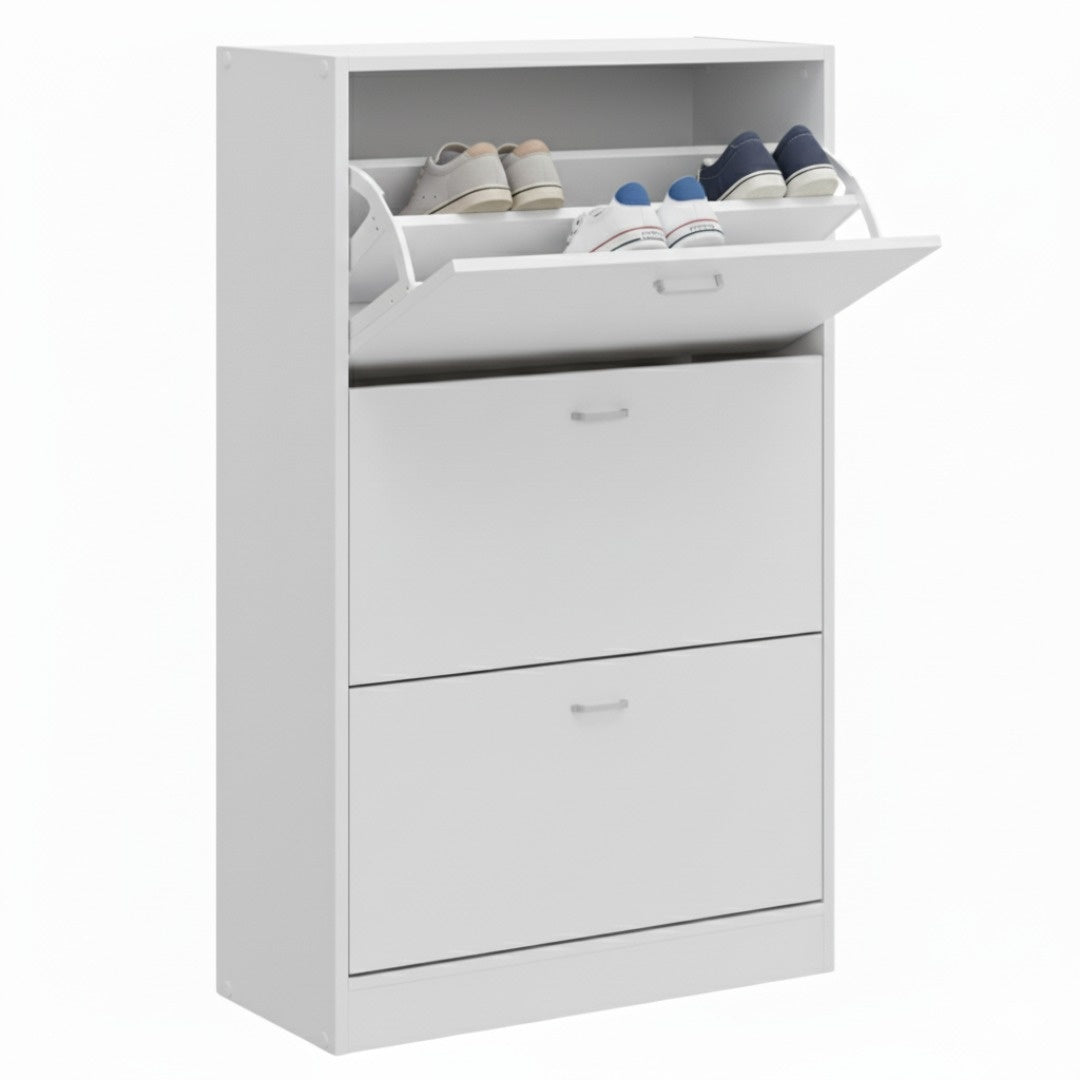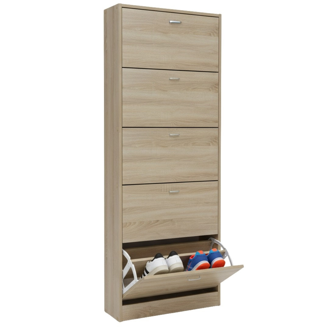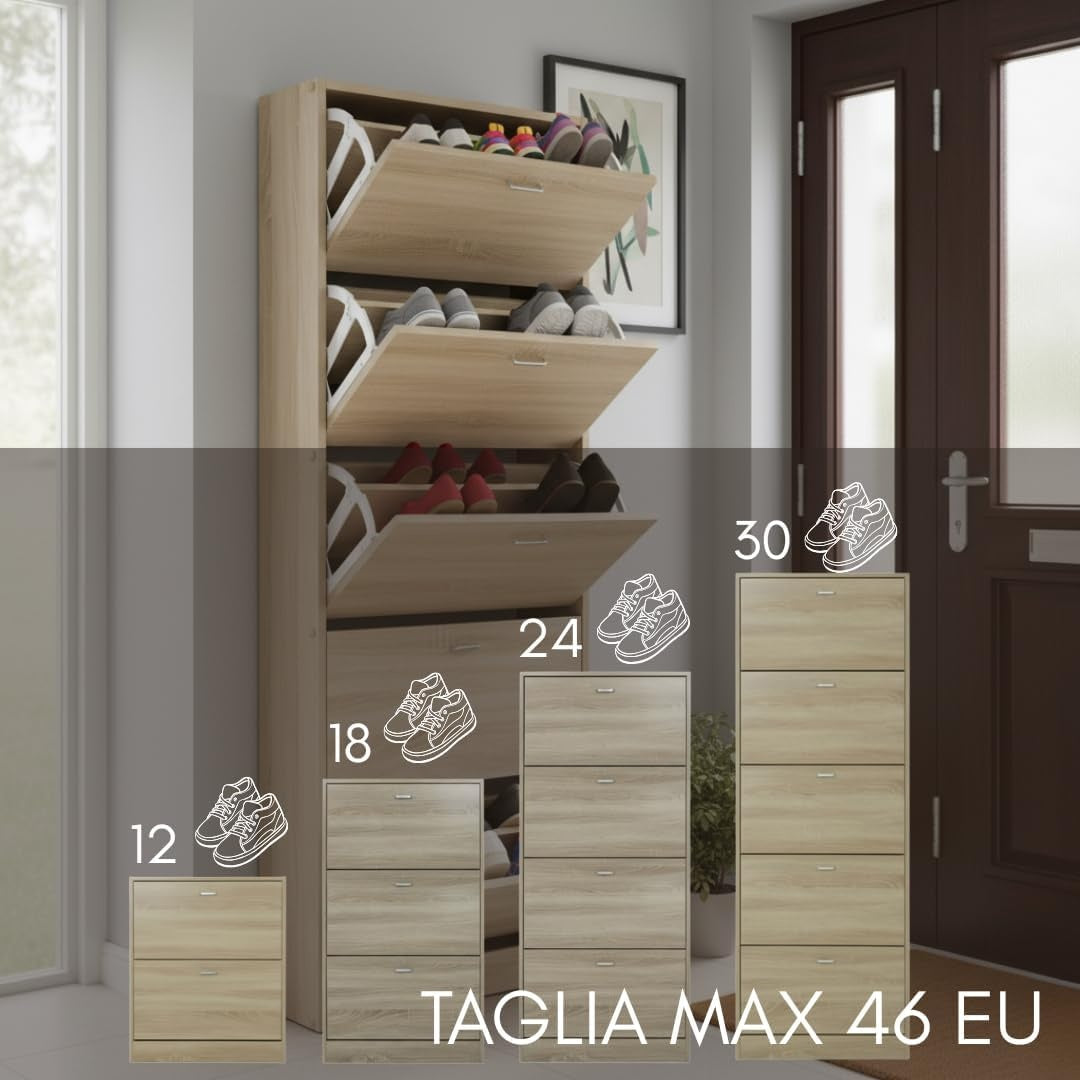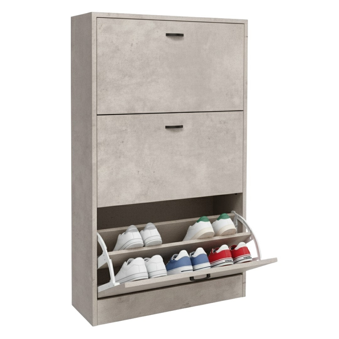 Scarpiera in MDF Melaminico 2/3/4/5 ripiani, Ante a Ribalta, Rovere Bianco Cemento