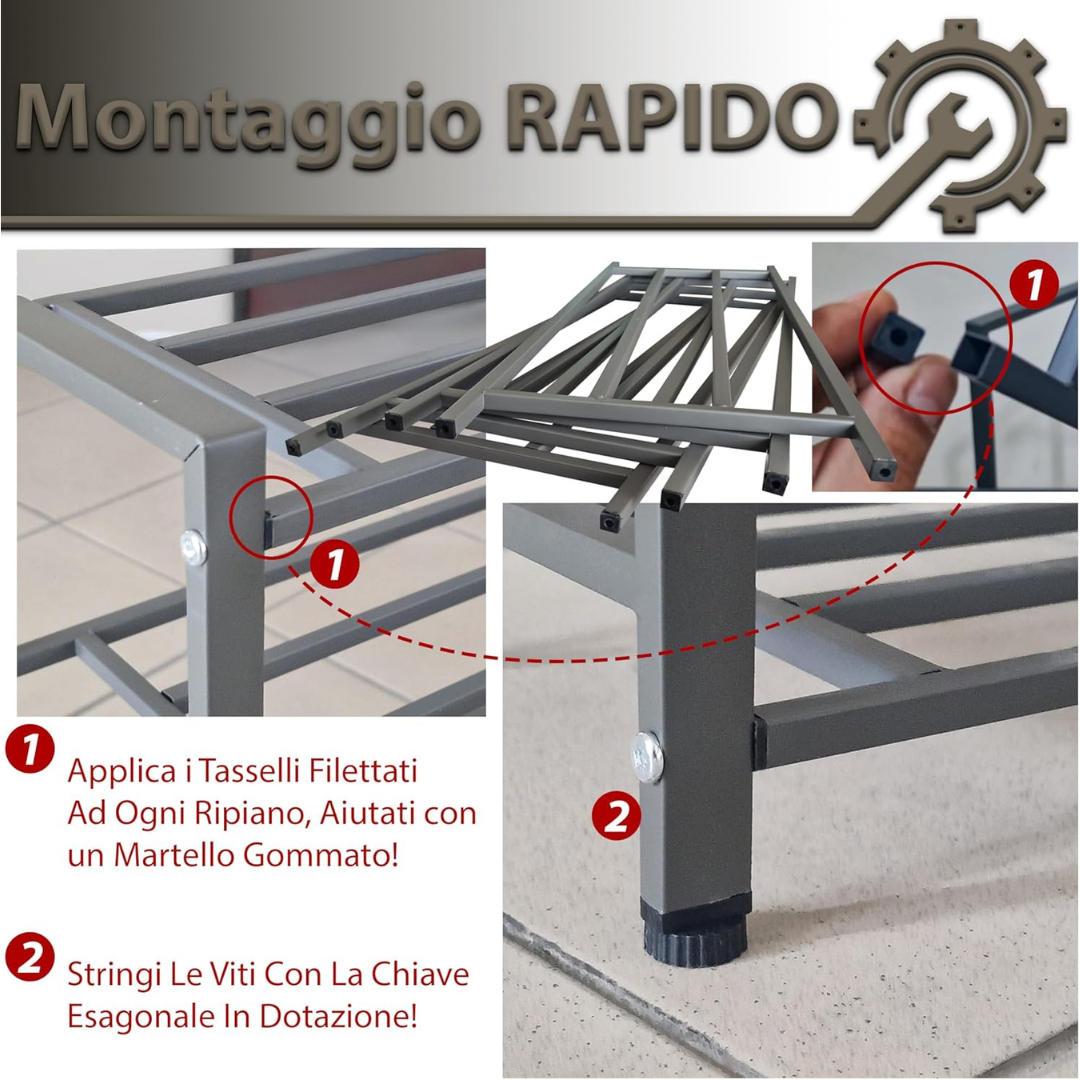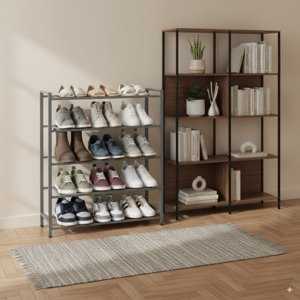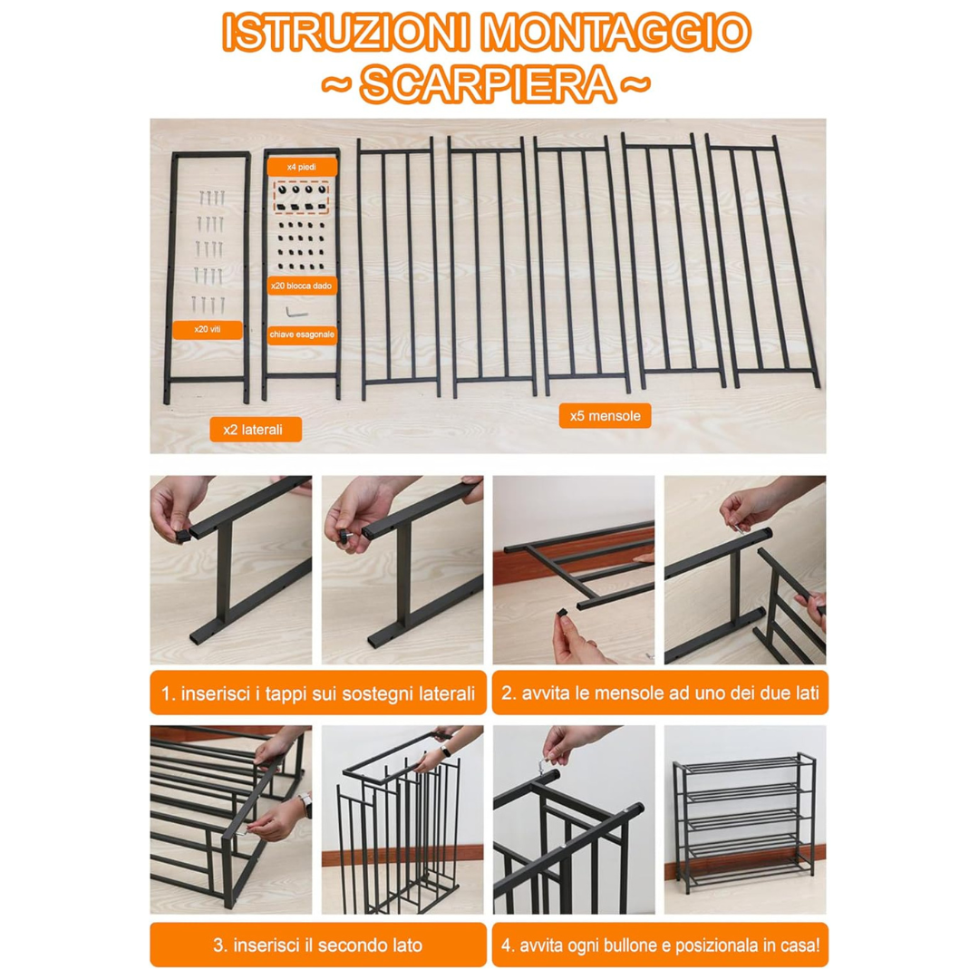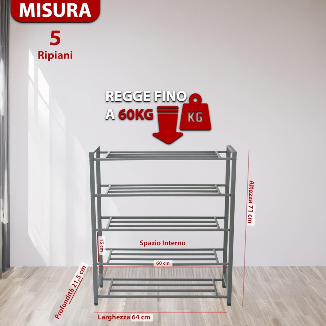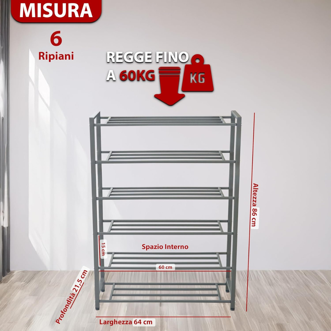 - ORGANIZZAZIONE EFFICIENTE: Gli scaffali a 5 o 6 ripiani offrono spazio sufficiente per riporre scarpe, scarponi e accessori, ottimizzando lo spazio anche in ingressi stretti.