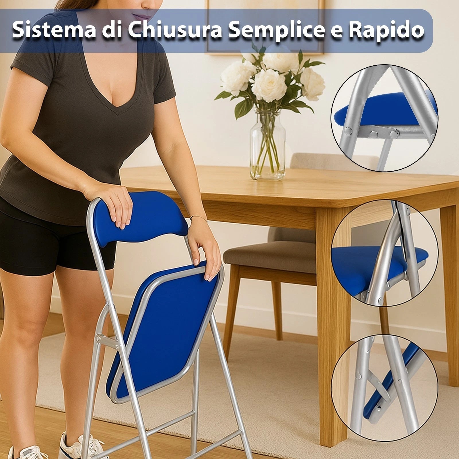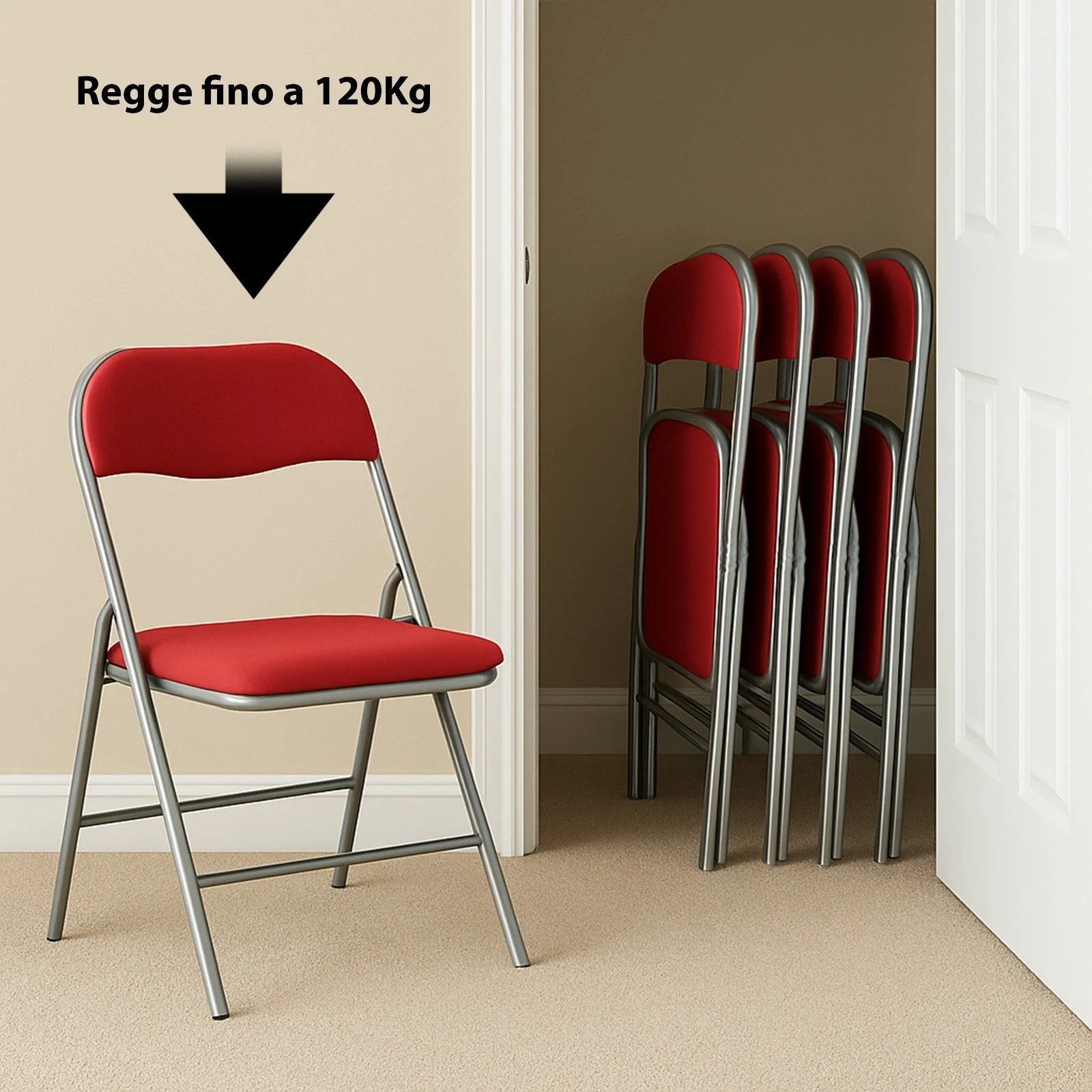 Sedie pieghevoli imbottite set 6, eleganti e salvaspazio