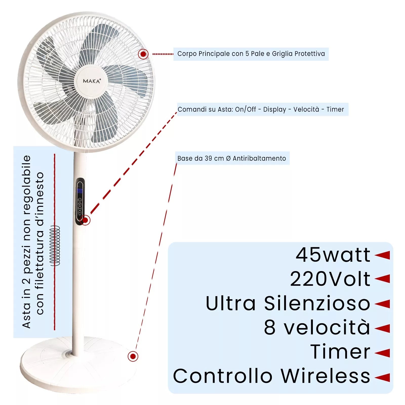 Ventilatore a piantana turbo 45W, 8 velocità, potente, silenzioso e leggero