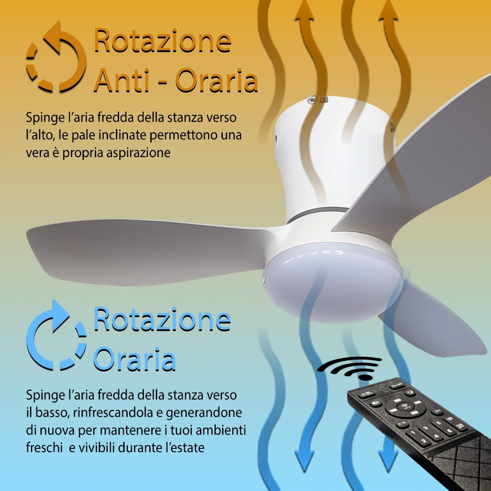 CONTROLLO TOTALE VIA TELECOMANDO : gestisci tutte le funzioni direttamente dal letto o dal divano, grazie al telecomando multifunzione incluso. Timer, velocità, luce e rotazione sempre sotto controllo.