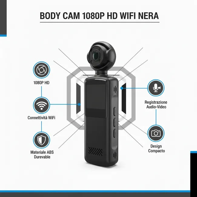 • Design compatto e resistente in ABS, perfetto da indossare, montare su caschi o utilizzare come dash cam portatile.