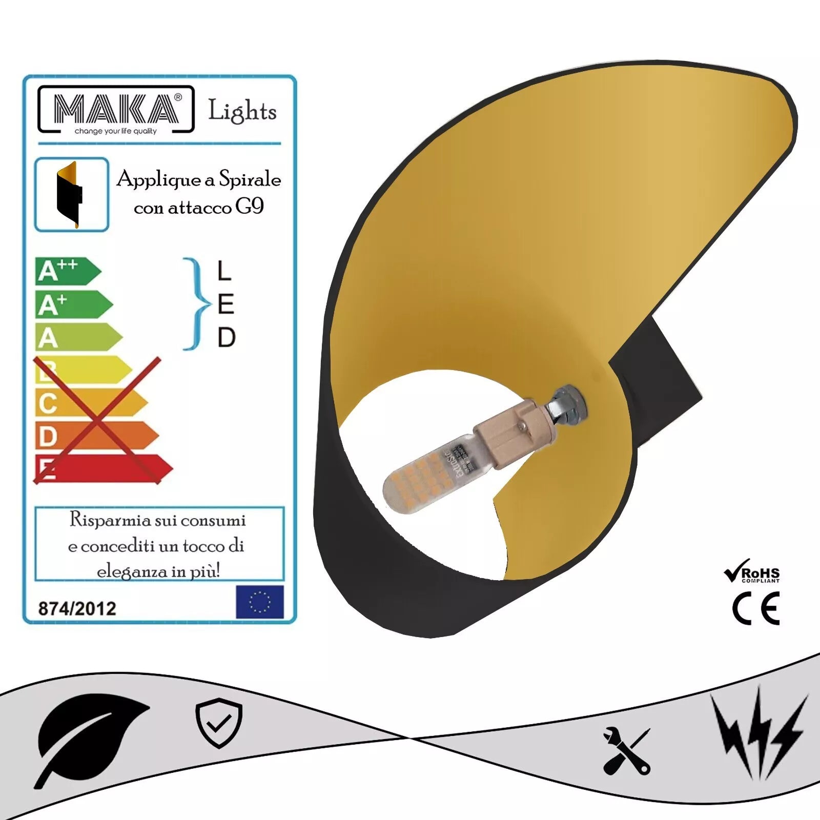 - FACILE INSTALLAZIONE: Si monta facilmente su qualsiasi parete interna, fornendo un'illuminazione pratica e funzionale senza complicazioni.