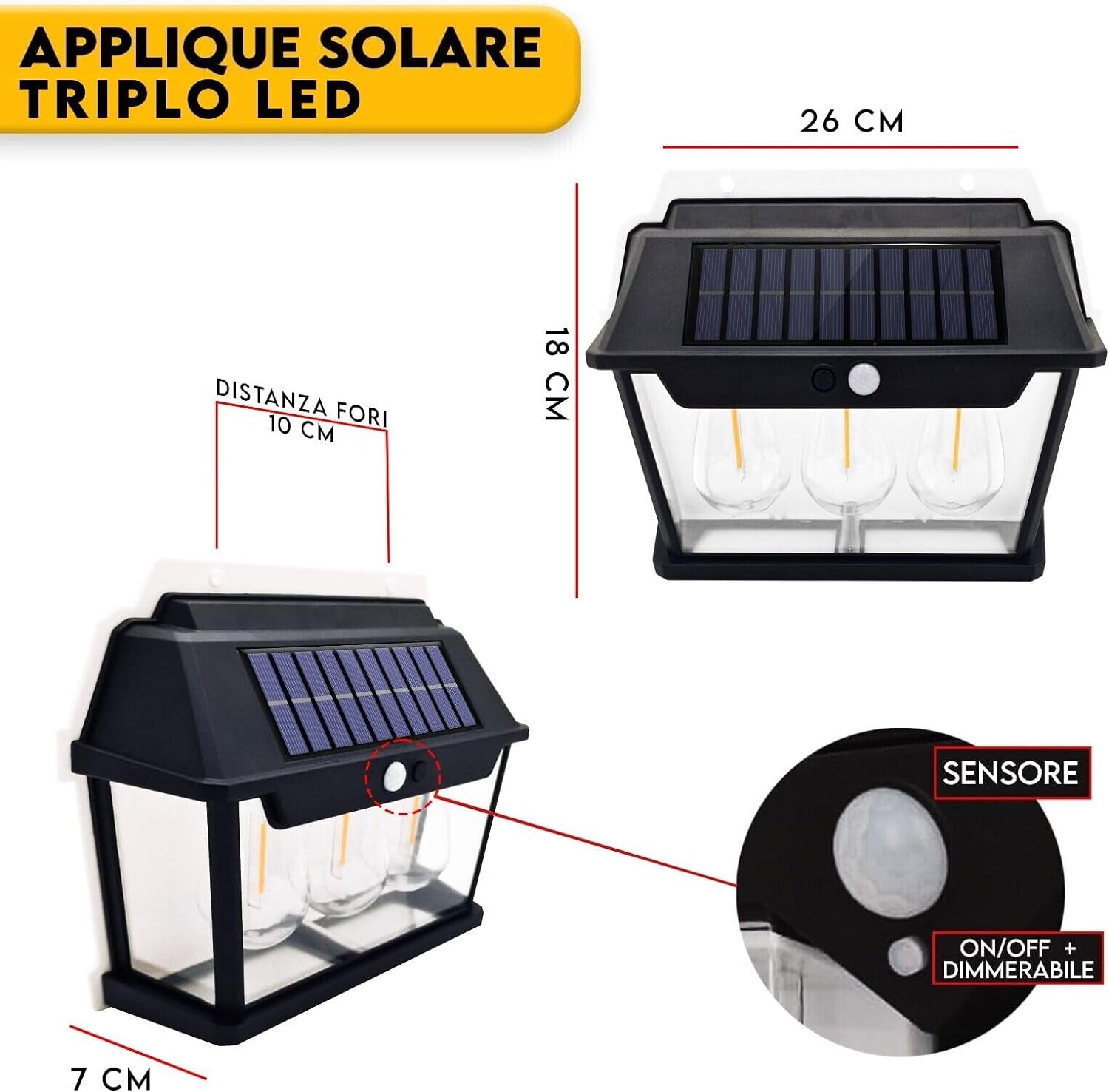 Light up your outdoor life with the magic of solar technology! Our solar outdoor wall lamp, equipped with an intelligent twilight sensor and a high-quality solar panel, provides reliable lighting. The powerful battery gives you 5 hours of splendid light for unforgettable evenings, and its IP65 waterproofness resists any weather condition. Easy installation and energy saving, this solar lamp is the perfect solution to transform your outdoor space into a welcoming and magical atmosphere!