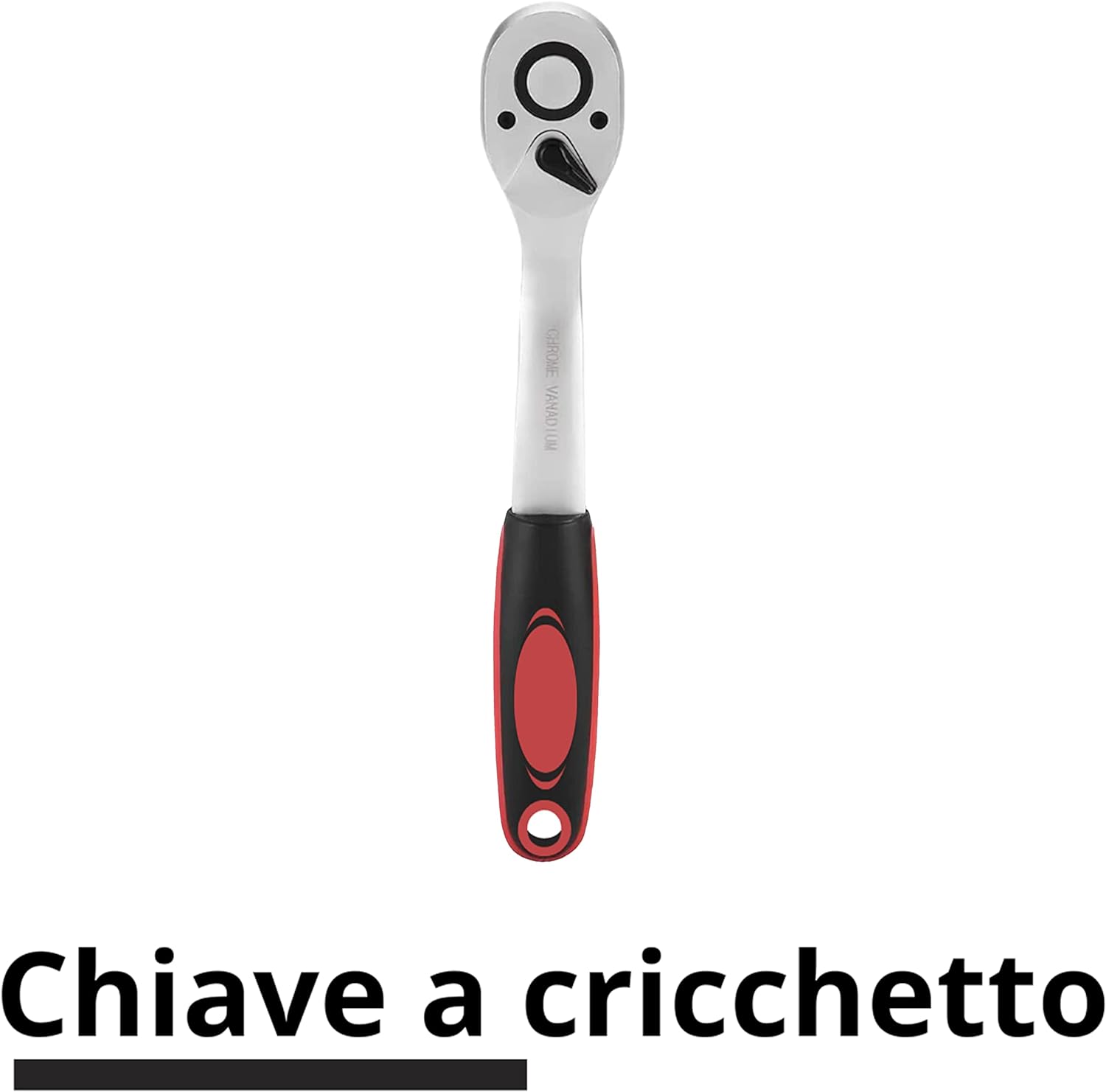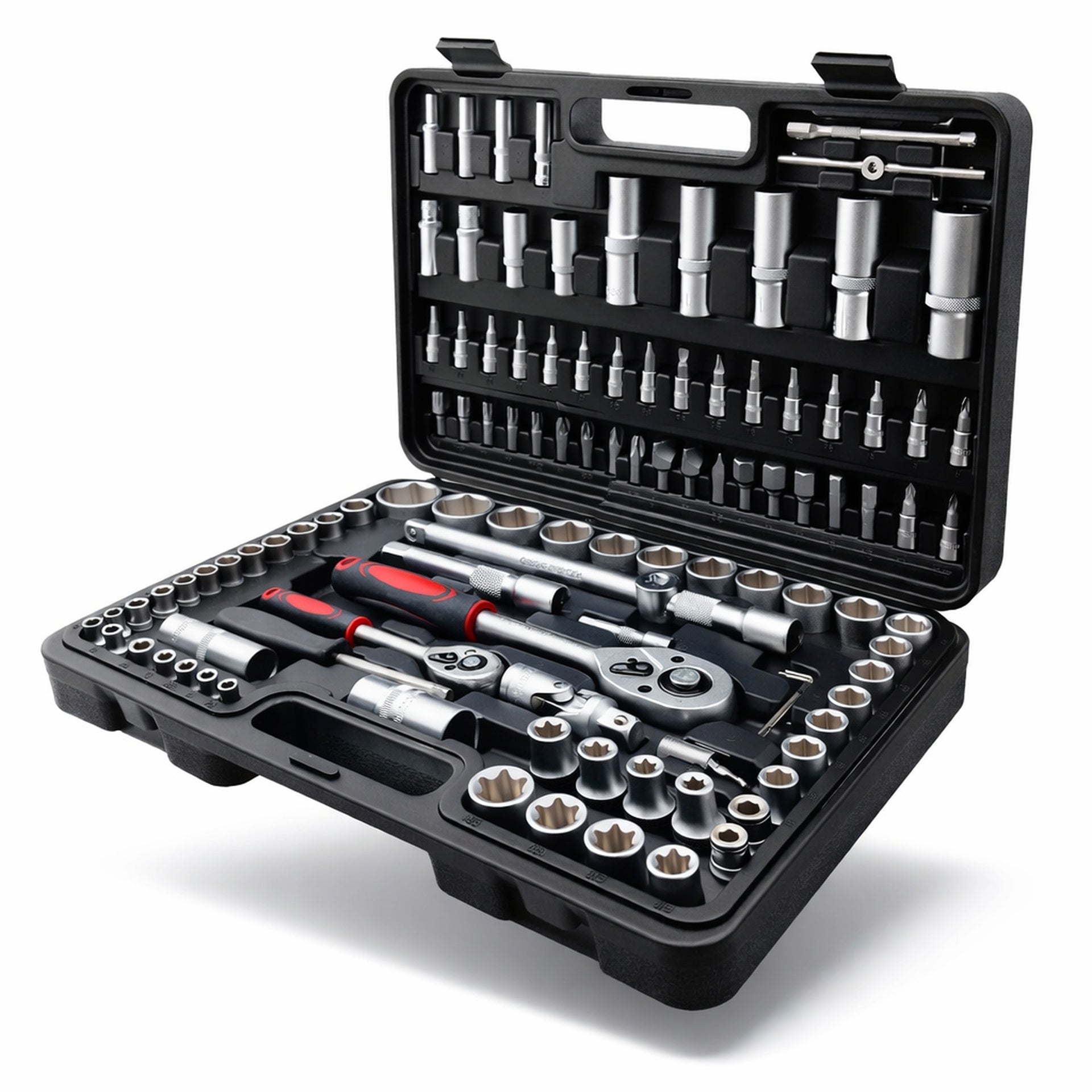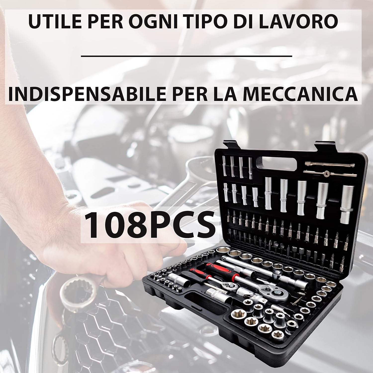 The case includes a wide range of tools, including 31 sockets with 1/4" and 1/2" connection, ratchets, extensions, joints, "T" lever, inserts for screws with different shapes (slotted, cross , Allen keys and Torx), adapter and hex keys. This kit represents a complete solution to address multiple applications that require the manipulation of screws or bolts of various sizes and shapes, offering maximum versatility and convenience for those working in the workshop or DIY sector.