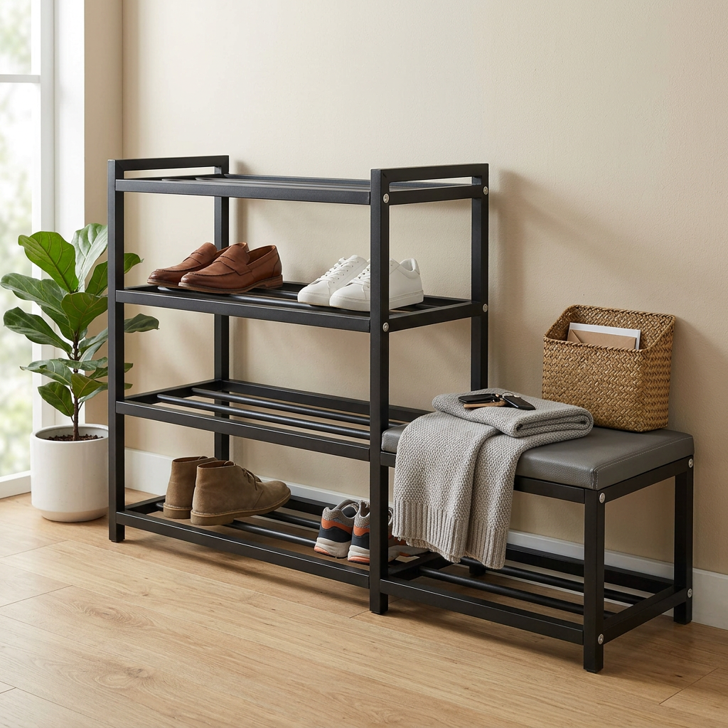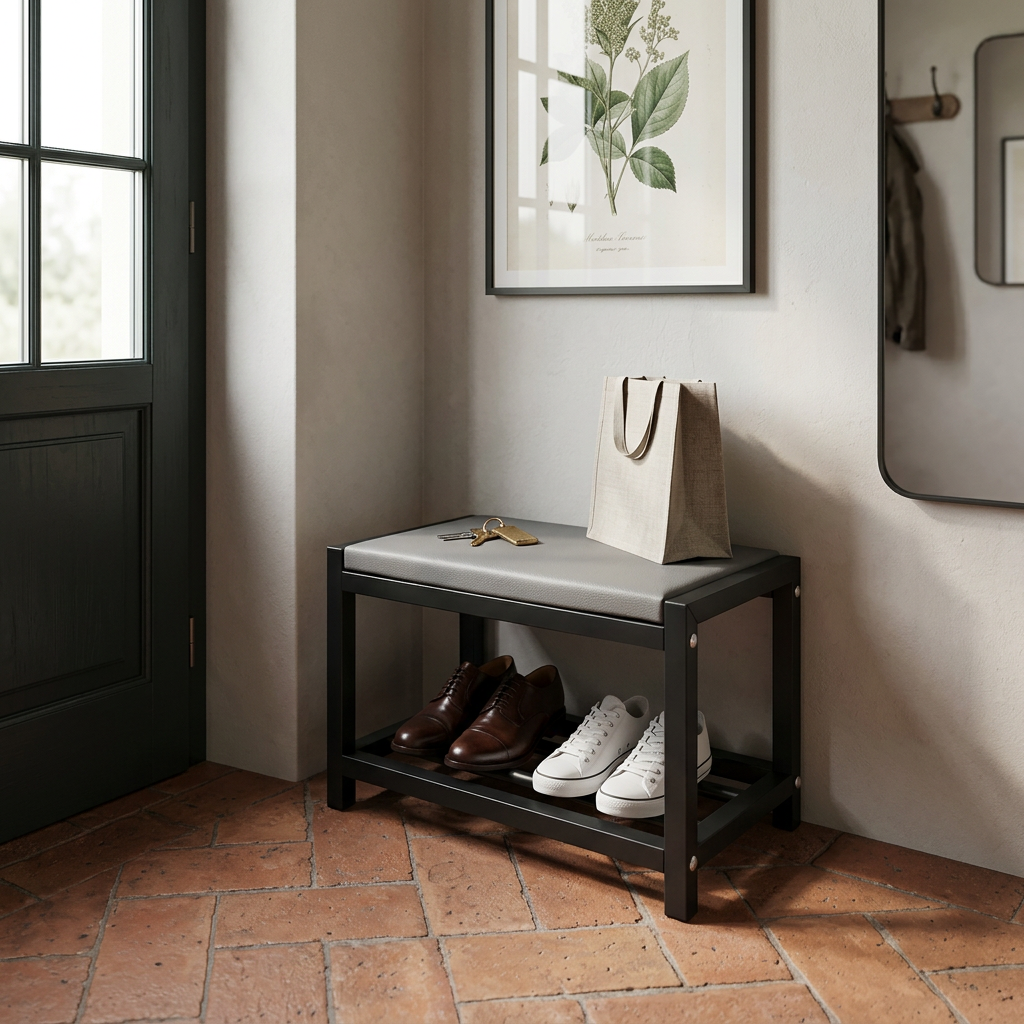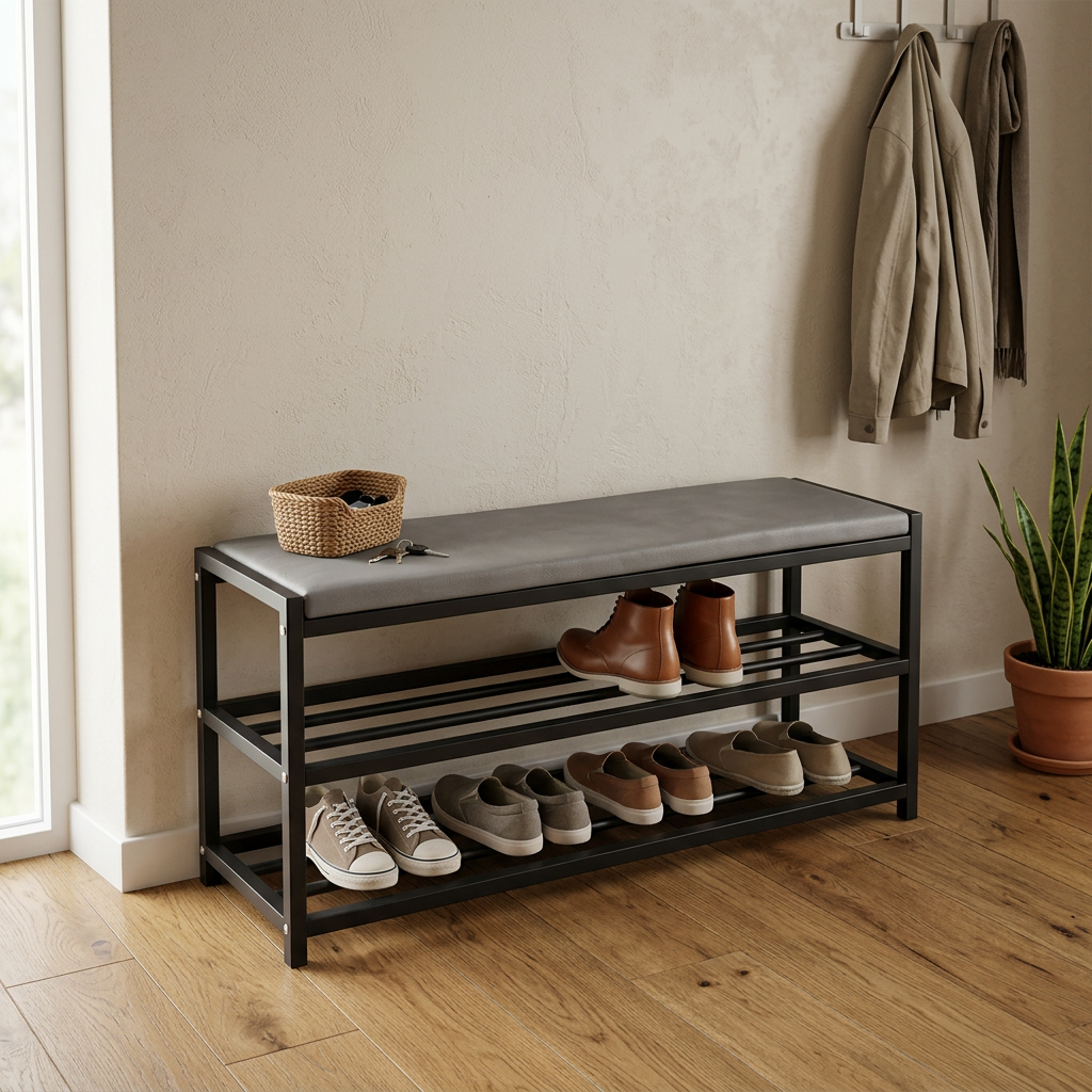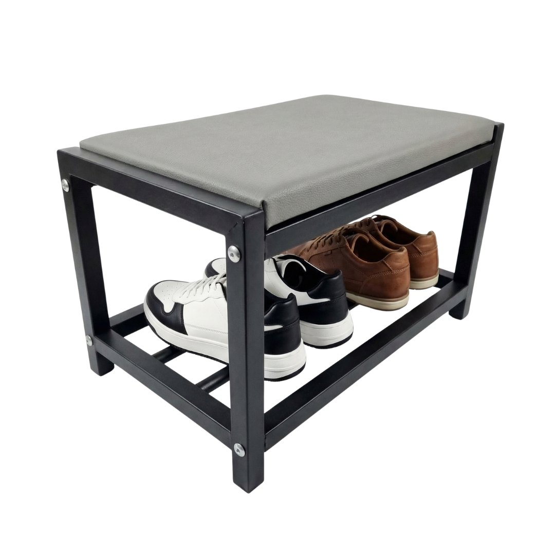 Space-saving shoe rack with seat - 2 shelves (60cm)