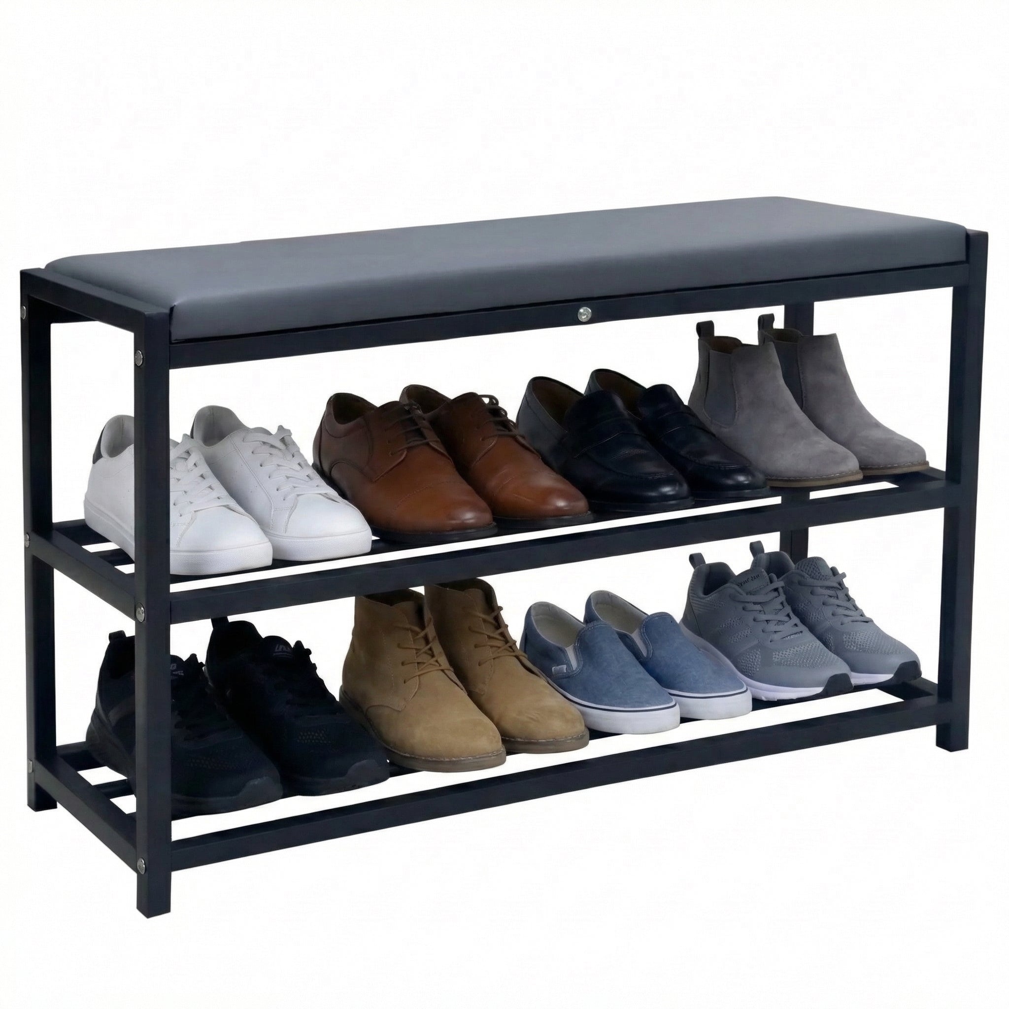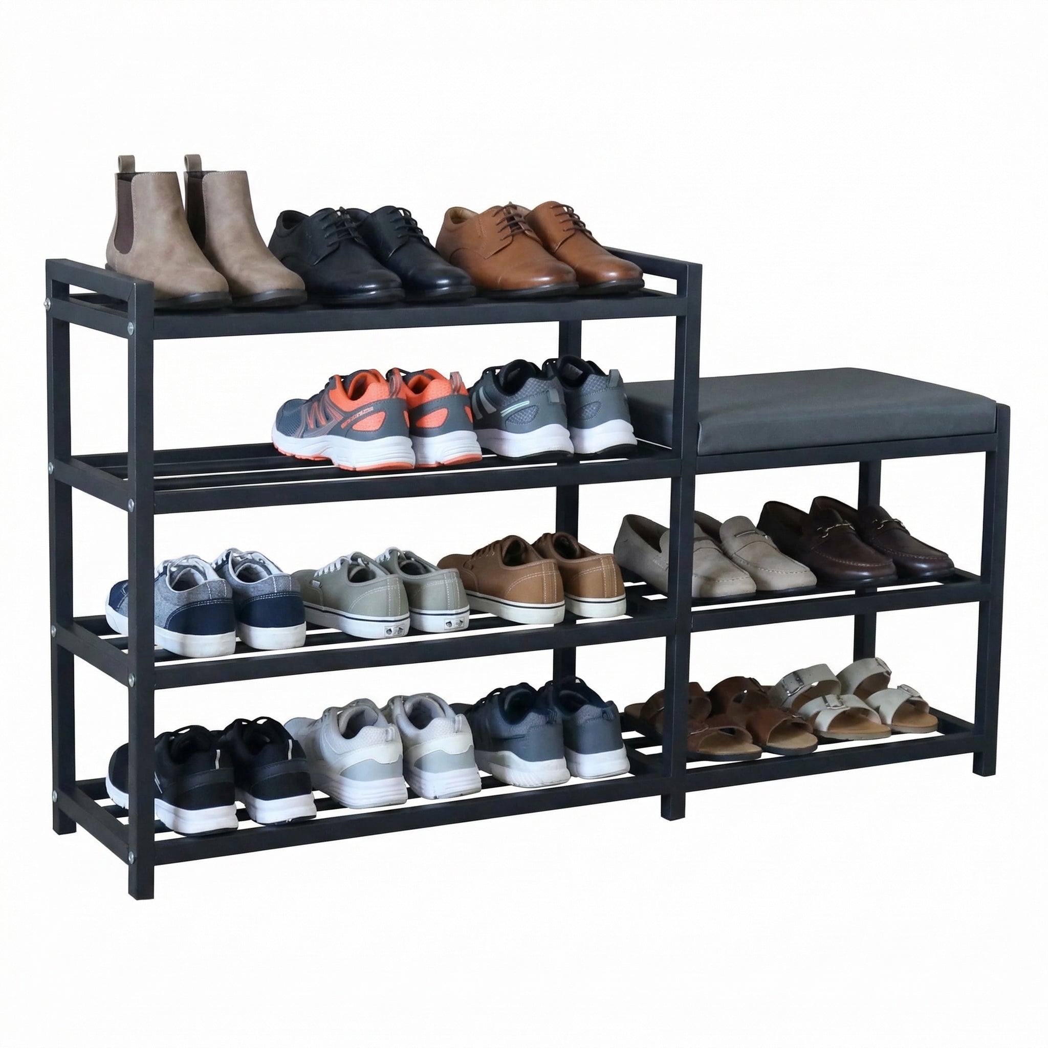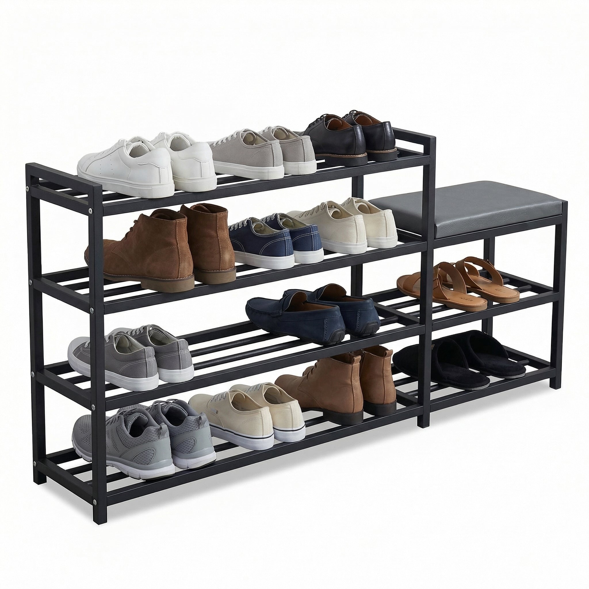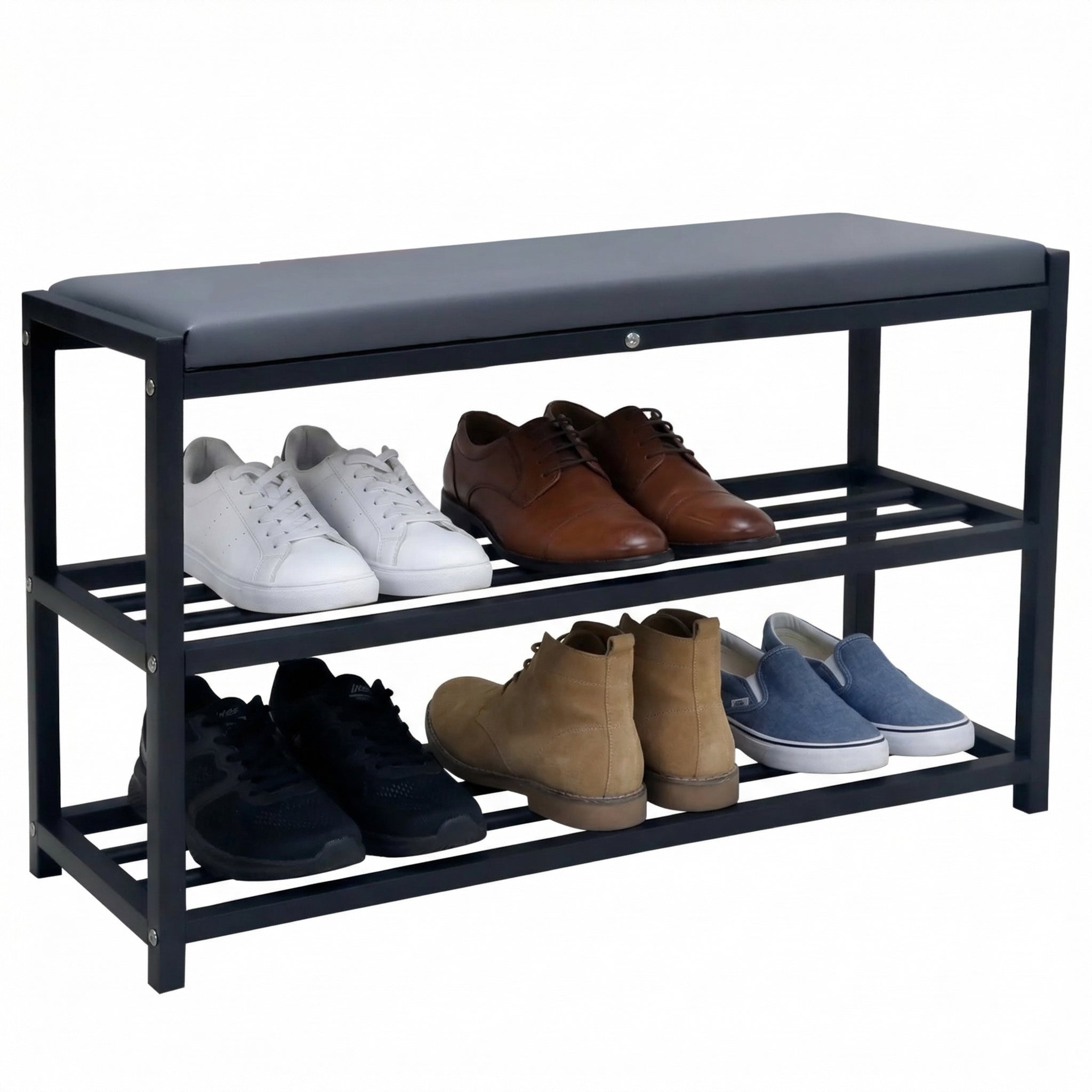 Space-saving shoe rack with seat - 2 shelves (60cm)