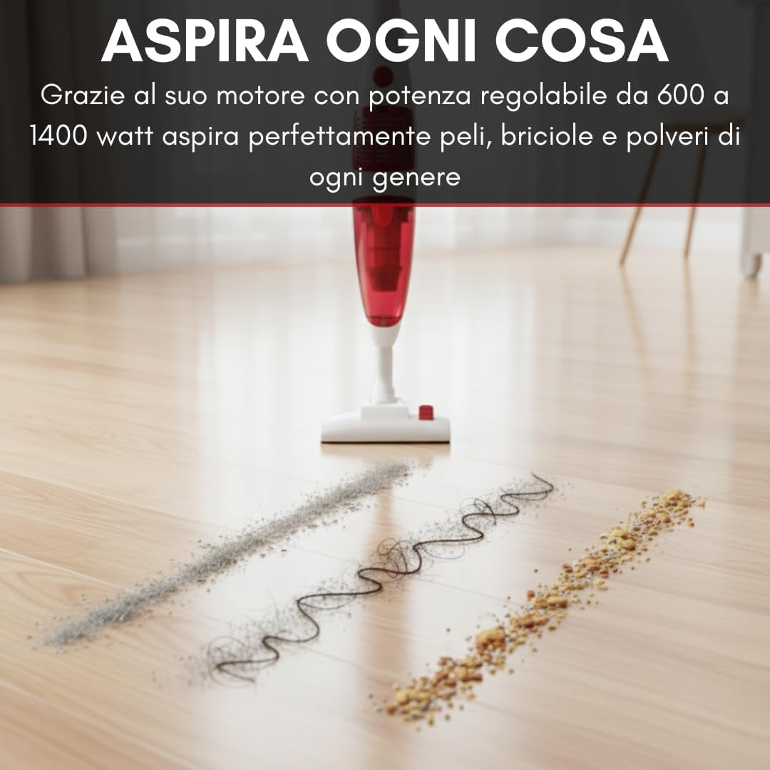 Pulizia su misura per ogni esigenza: la potenza regolabile da 600 a 1400W consente di adattare l’aspirazione a qualsiasi superficie, dalla manutenzione quotidiana allo sporco più ostinato, con forza fino a 23 kPa.