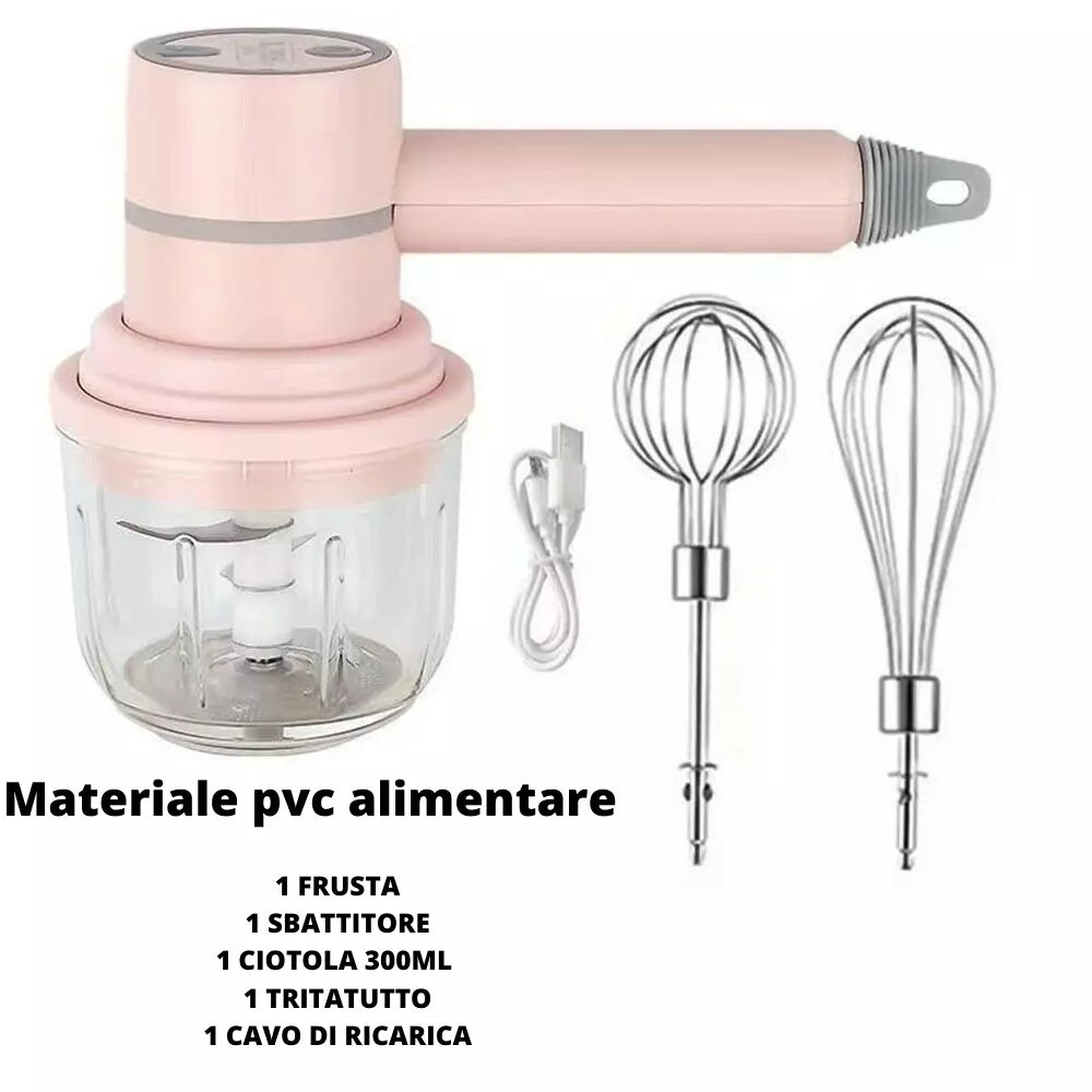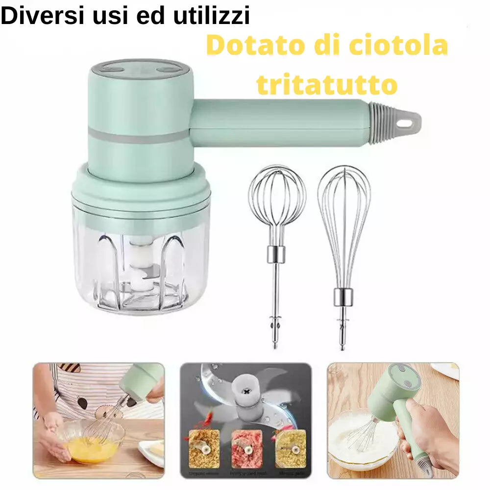 Frullatore a Immersione 3in1 Ricaricabile con Lame in Acciaio Inox