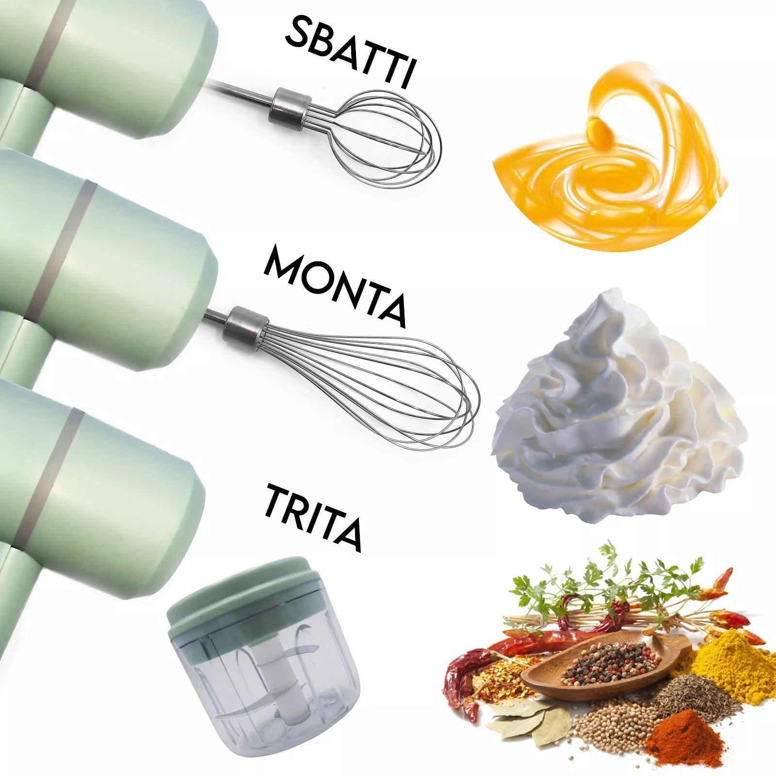 - VERSATILE 3 IN 1: Utilizzabile come frullatore, sbattitore e tritatutto, questo strumento multifunzione semplifica la preparazione di una vasta gamma di ricette.
