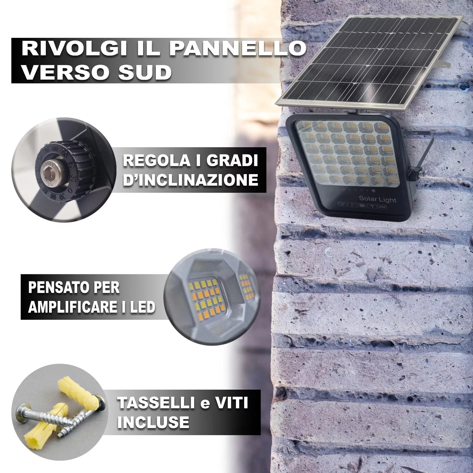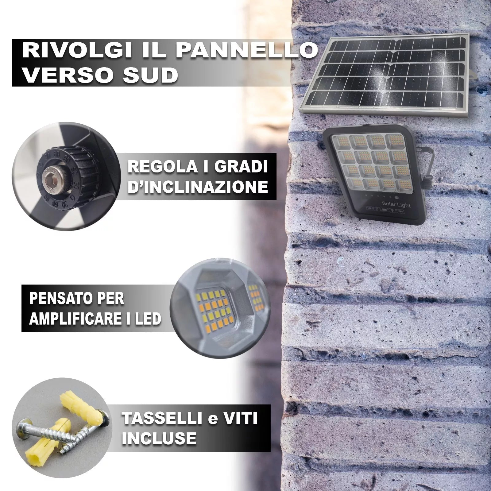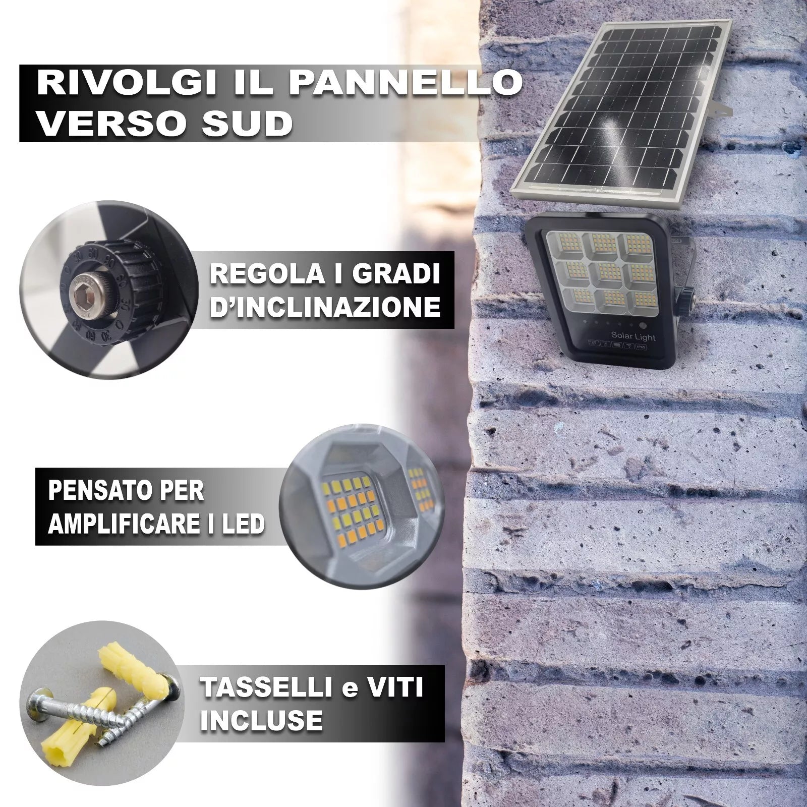 Faro LED Solare da Esterno con Pannello Fotovoltaico