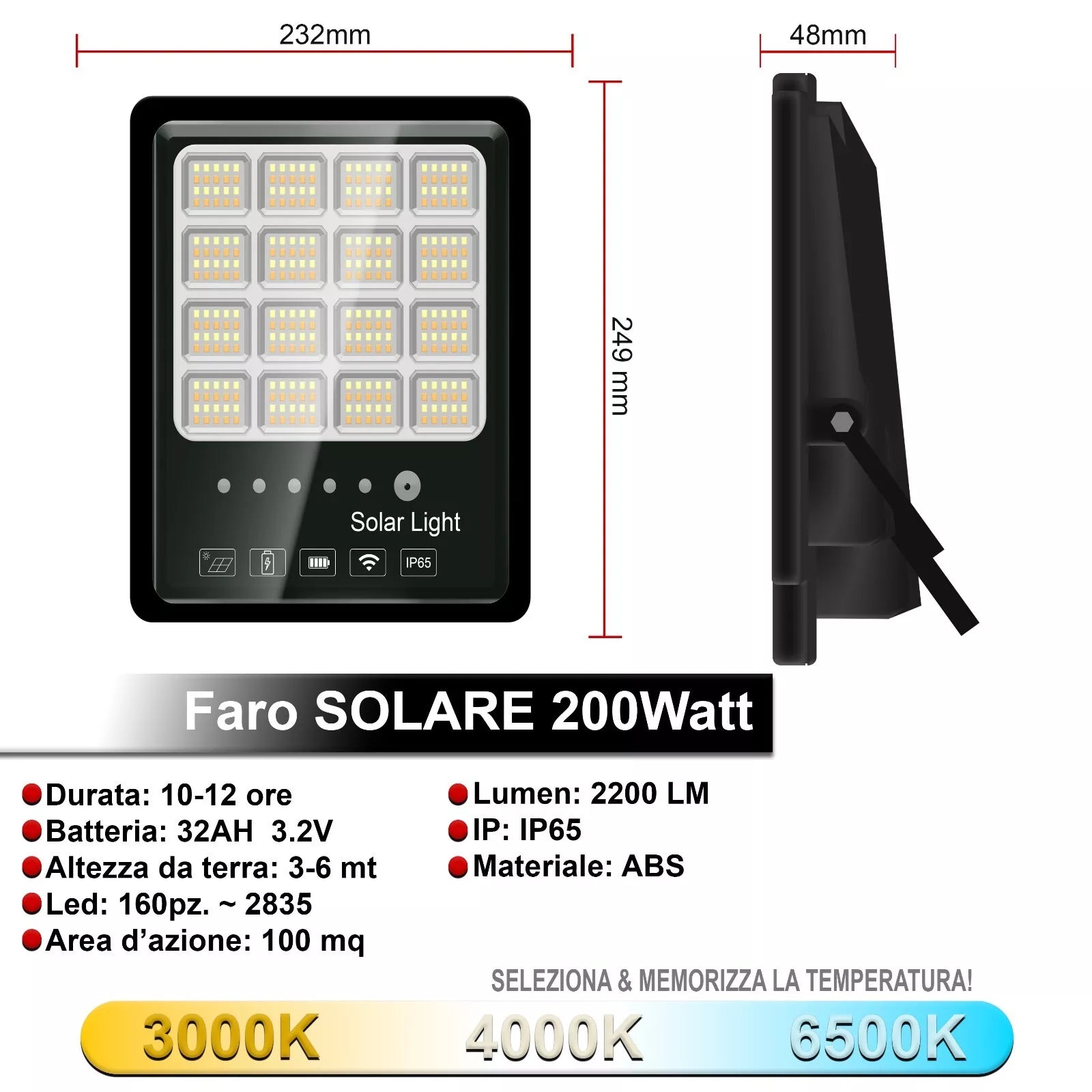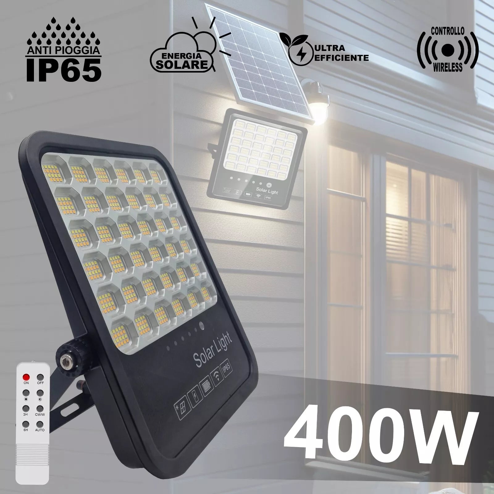- ALTA POTENZA: Disponibile in 100W, 200W e 400W, questo faro offre un'illuminazione intensa e uniforme, adatta a giardini, cortili e ampie aree esterne.