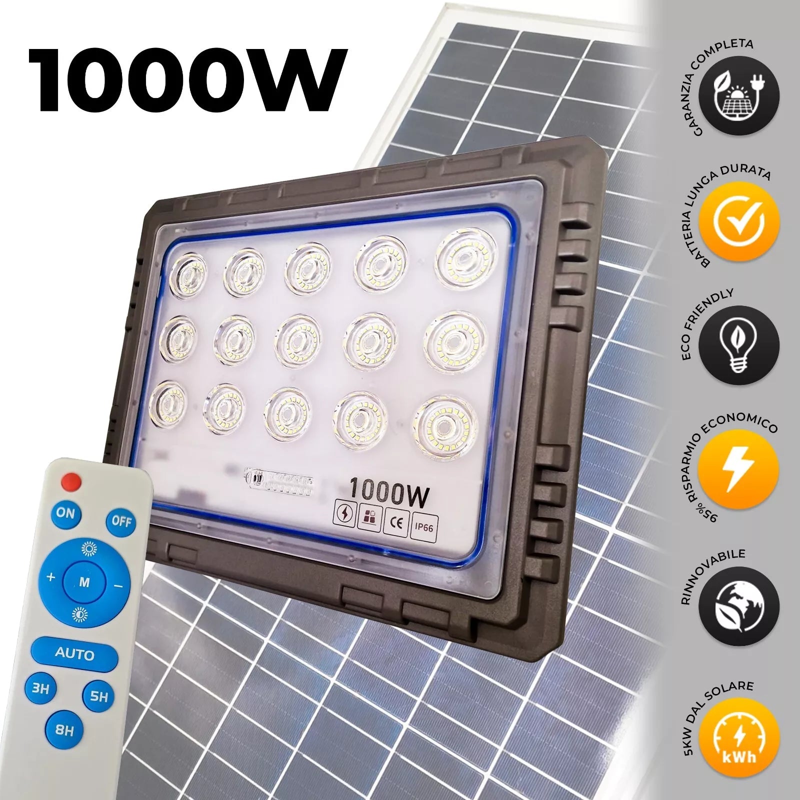 - ALTA POTENZA LUMINOSA: Disponibile in versioni da 800W e 1000W, questo faro solare garantisce un'illuminazione potente e uniforme, perfetta per grandi aree esterne.