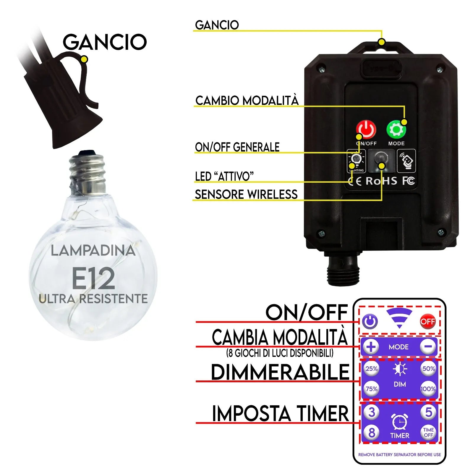 - IMPERMEABILE: Certificazione IP54 per resistere alle intemperie, ideale per uso esterno in giardini, balconi e feste.