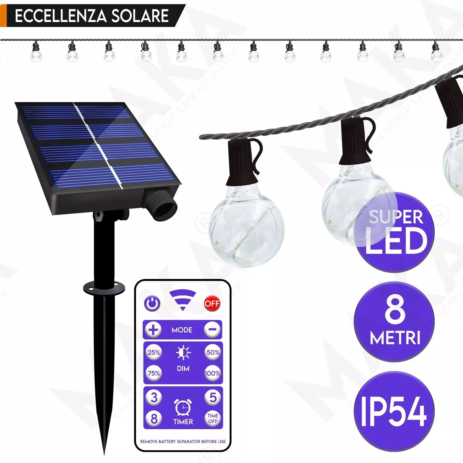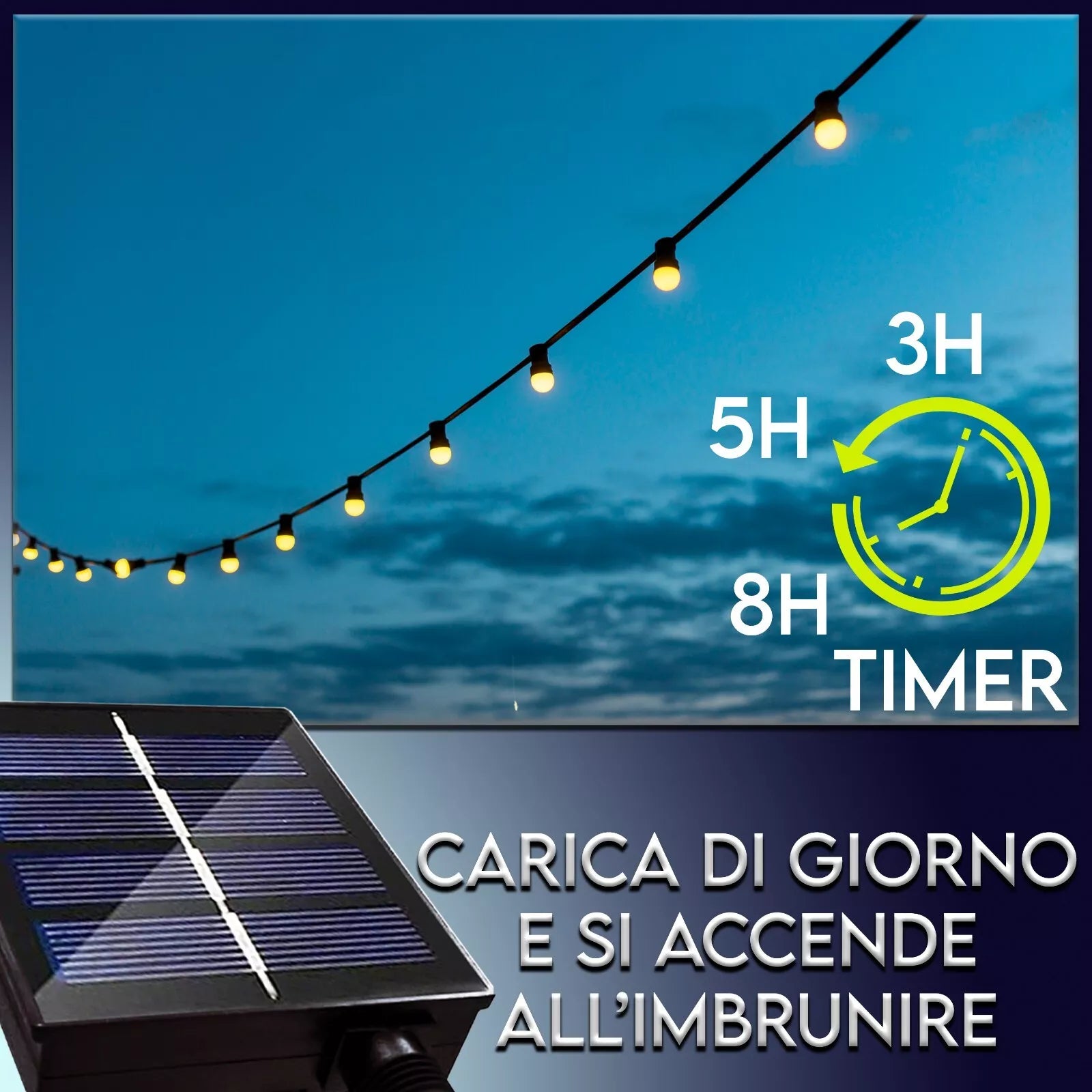 Catena Luminosa Esterno Solare LED 8M IP54 Impermeabile 20 Luci 7 Giochi di Luce