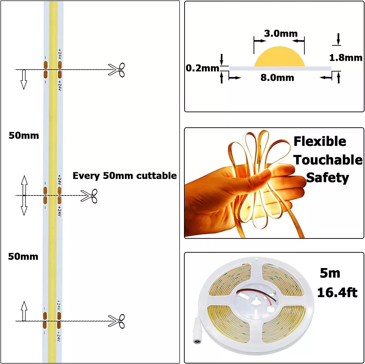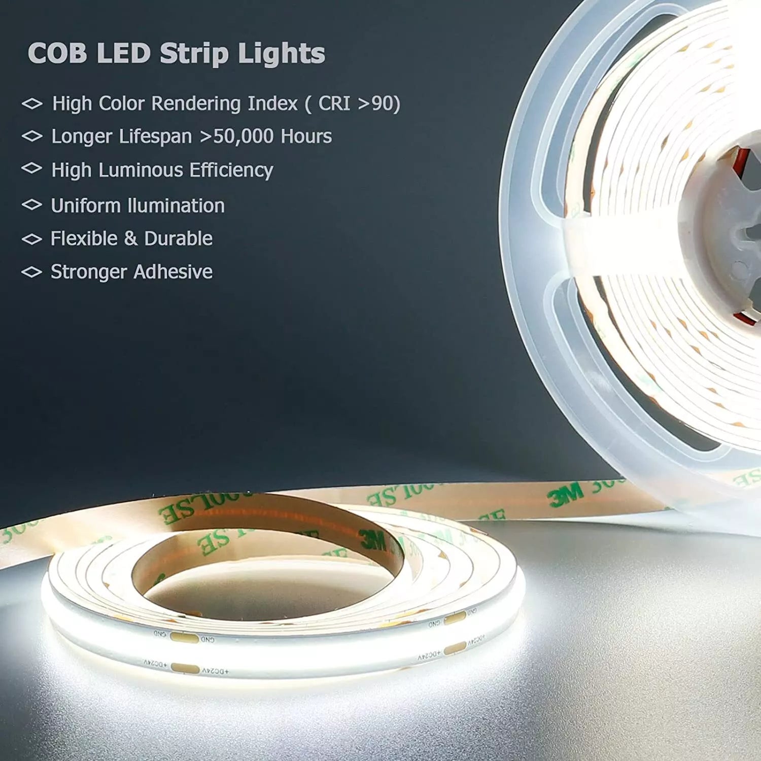 - EMISSIONE DI LUCE UNIFORME: Grazie ai chip LED COB più densi, la striscia LED offre una luce continua e omogenea senza interruzioni.