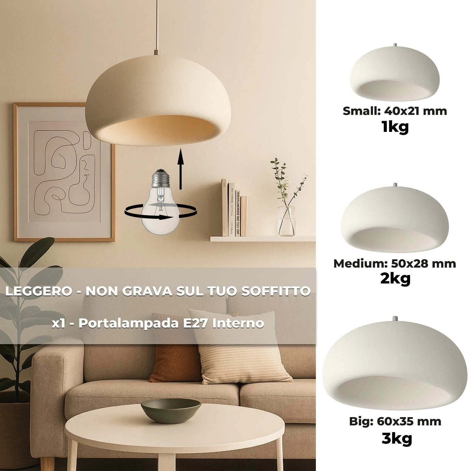 Paralume in schiuma poliuretanica effetto pietra: resistente, leggerissimo e visivamente raffinato.