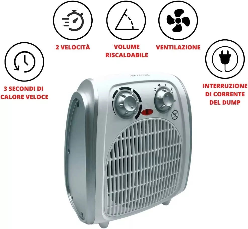 - POTENZA 2000W: Offre un riscaldamento rapido e potente, ideale per ambienti di grandi dimensioni.