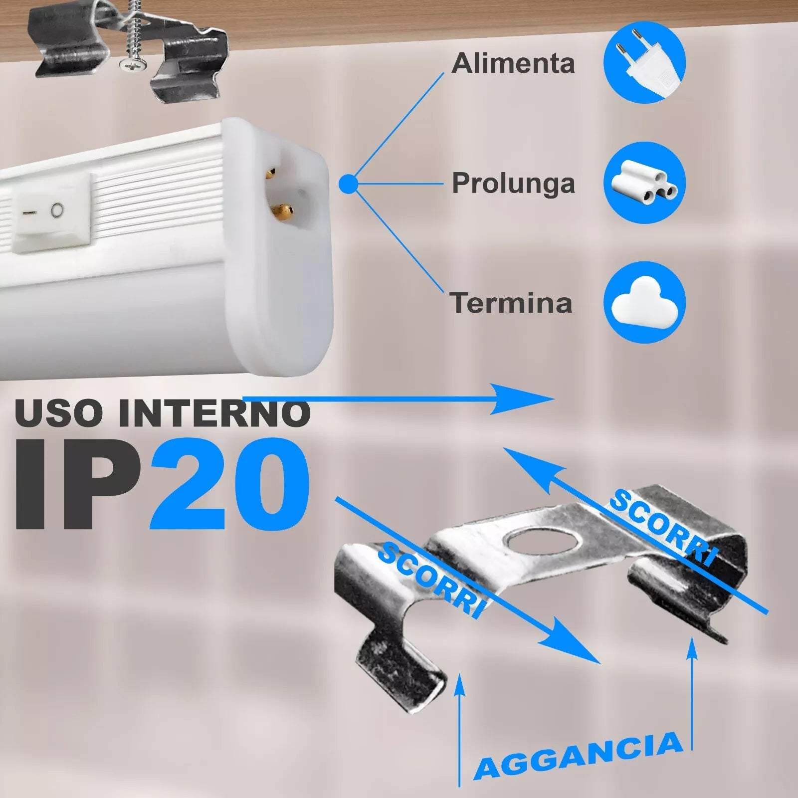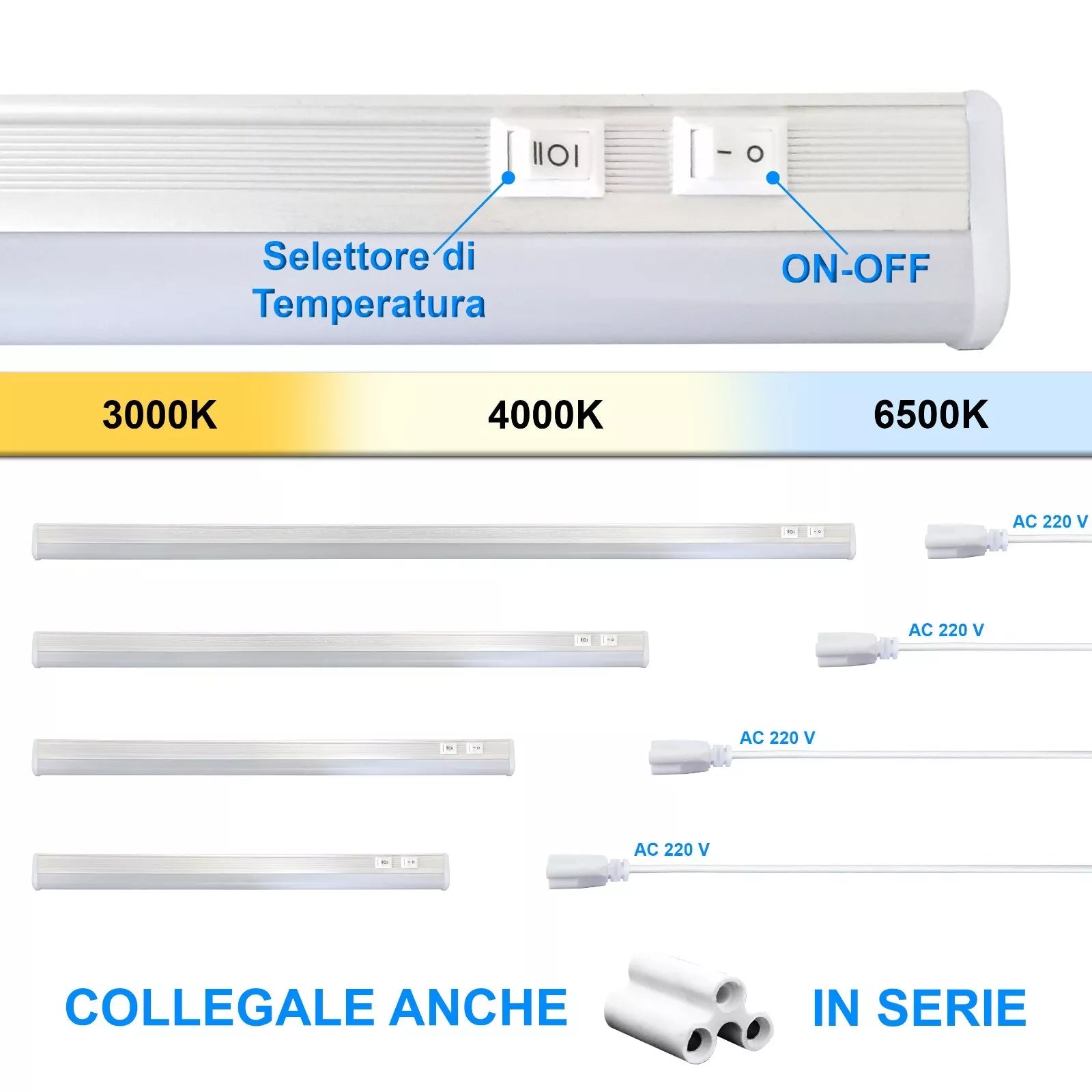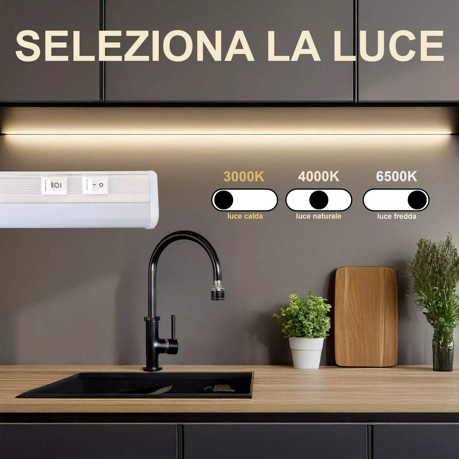 Barra LED Sottopensile Basso Consumo per Cucina con Cambio Luce e Kit Fissaggio