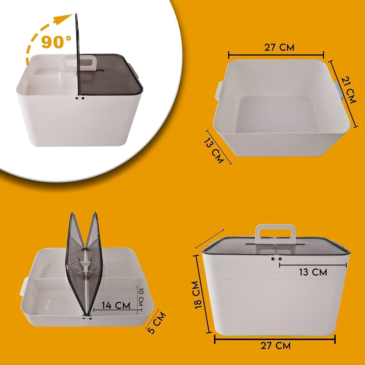 Keep your medications, cosmetics and snacks organized and easily accessible with our Storage Container. Made of durable ABS and featuring a clear lid, this container offers enough space and visibility to quickly identify the contents. Its generous dimensions of 27x21x18cm make it ideal for accommodating a variety of items, from daily medicine to favorite cosmetics or snacks.