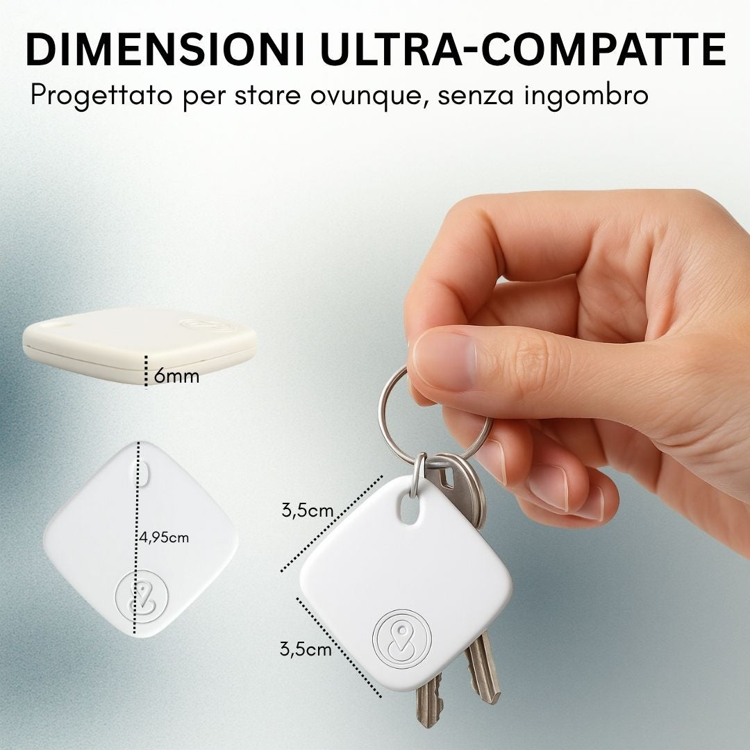 • Aggancia il localizzatore ovunque grazie al suo design ultra-compatto e leggero, perfetto per chiavi, borse, animali e oggetti di piccole dimensioni.