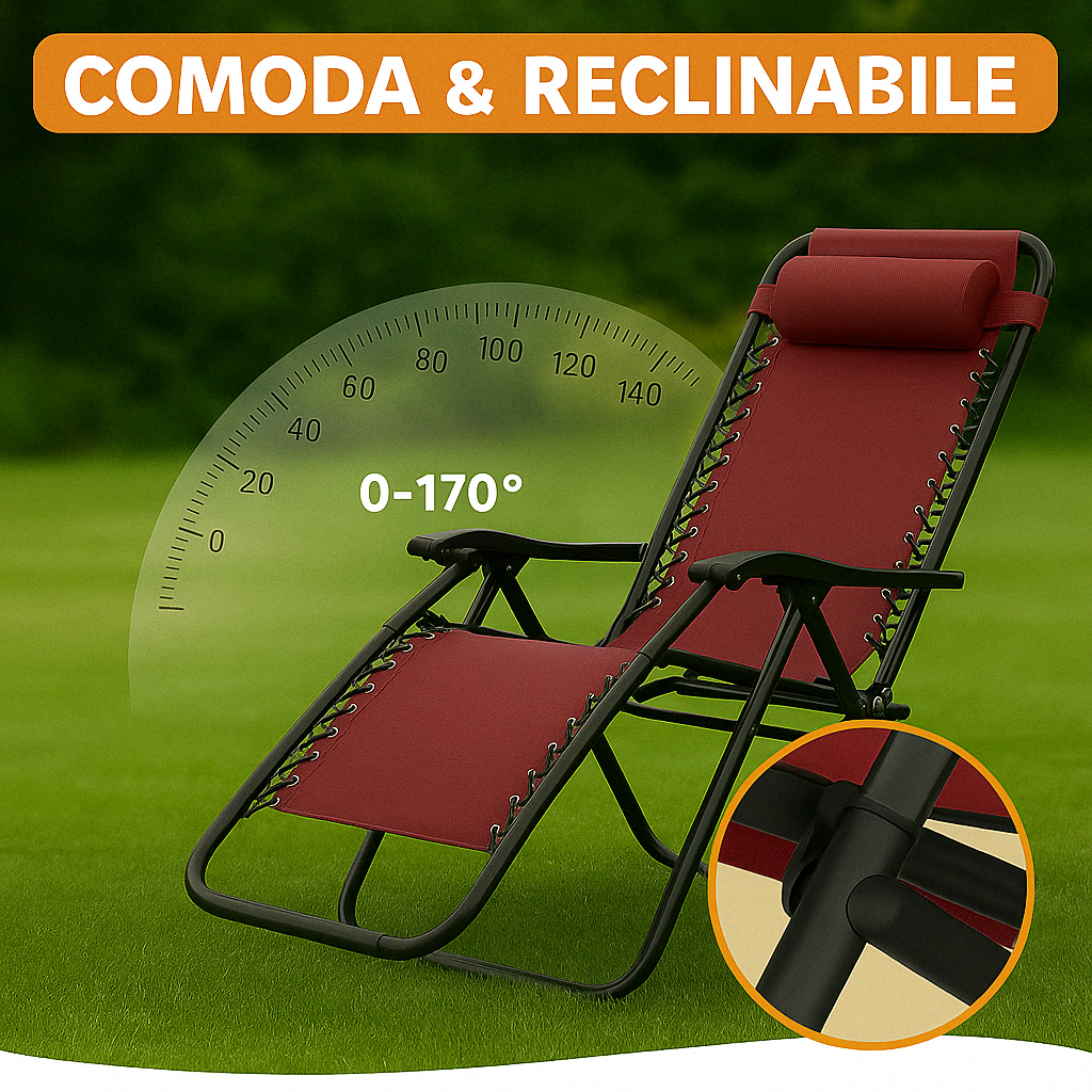 COMFORT REGOLABILE: La sedia reclinabile permette di regolare la posizione per adattarsi perfettamente al tuo comfort, offrendo supporto a schiena, collo e gambe.