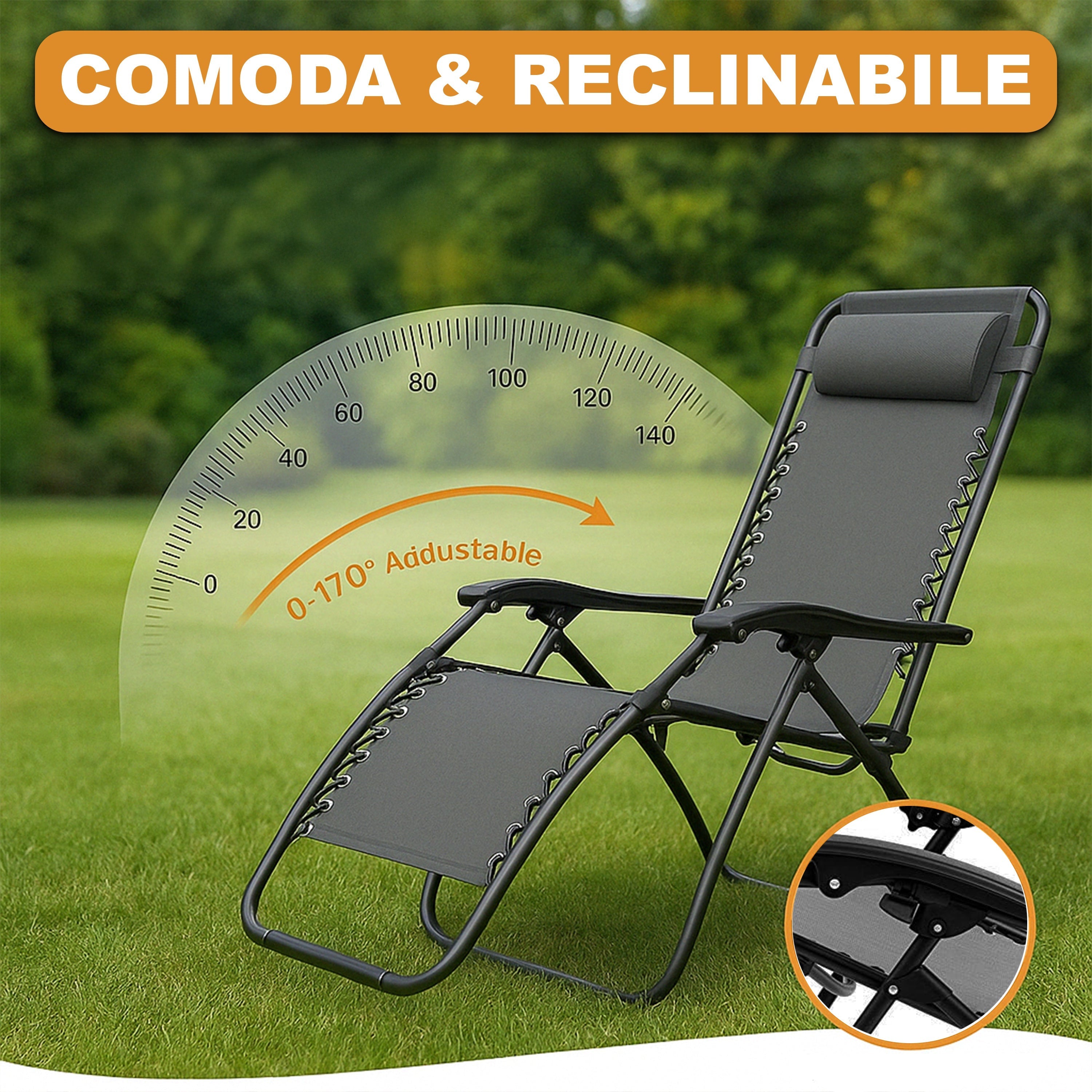 COMFORT SENZA GRAVITÀ: La sedia sdraio pieghevole offre un'esperienza di comfort senza gravità, riducendo la pressione sul corpo per un relax totale all'aria aperta.