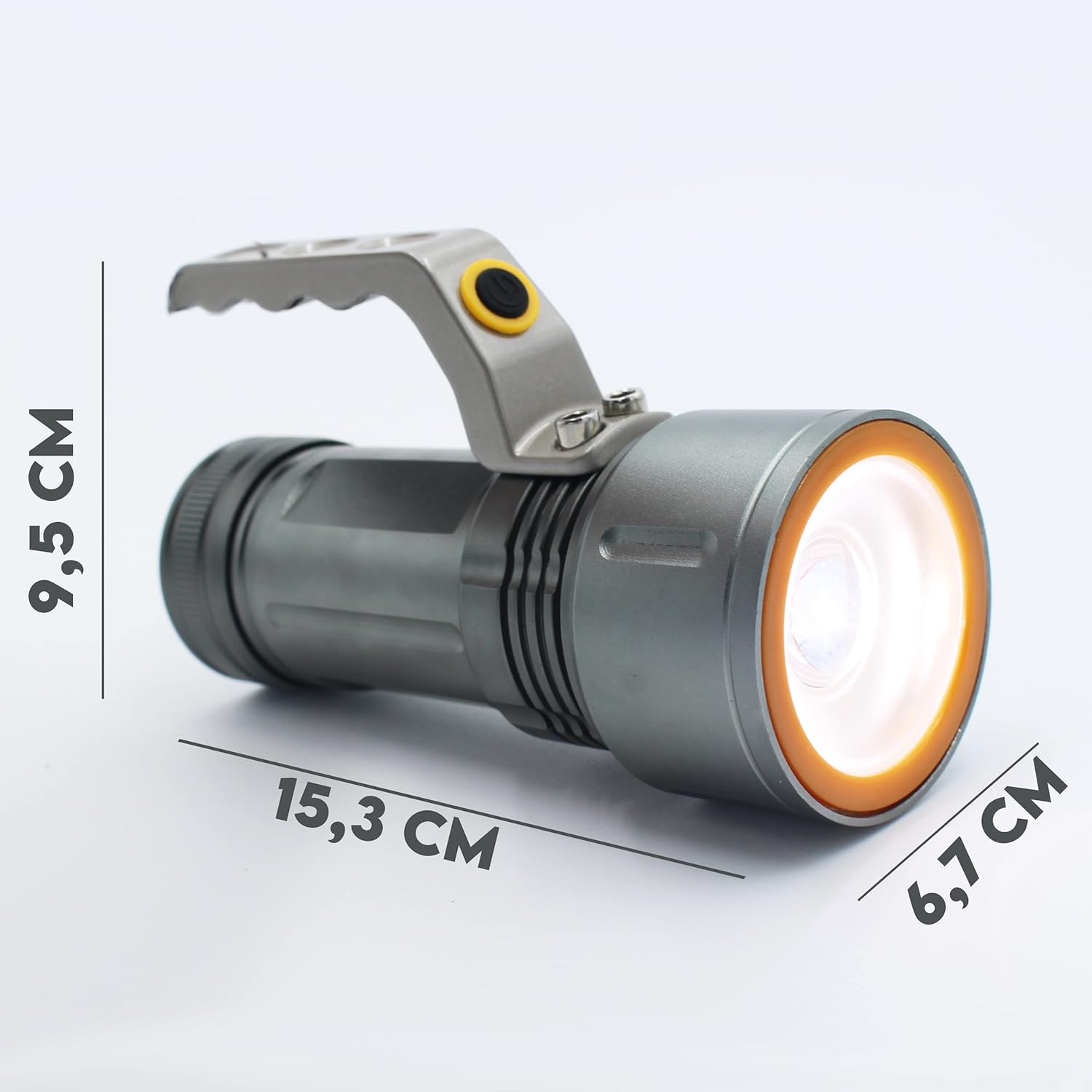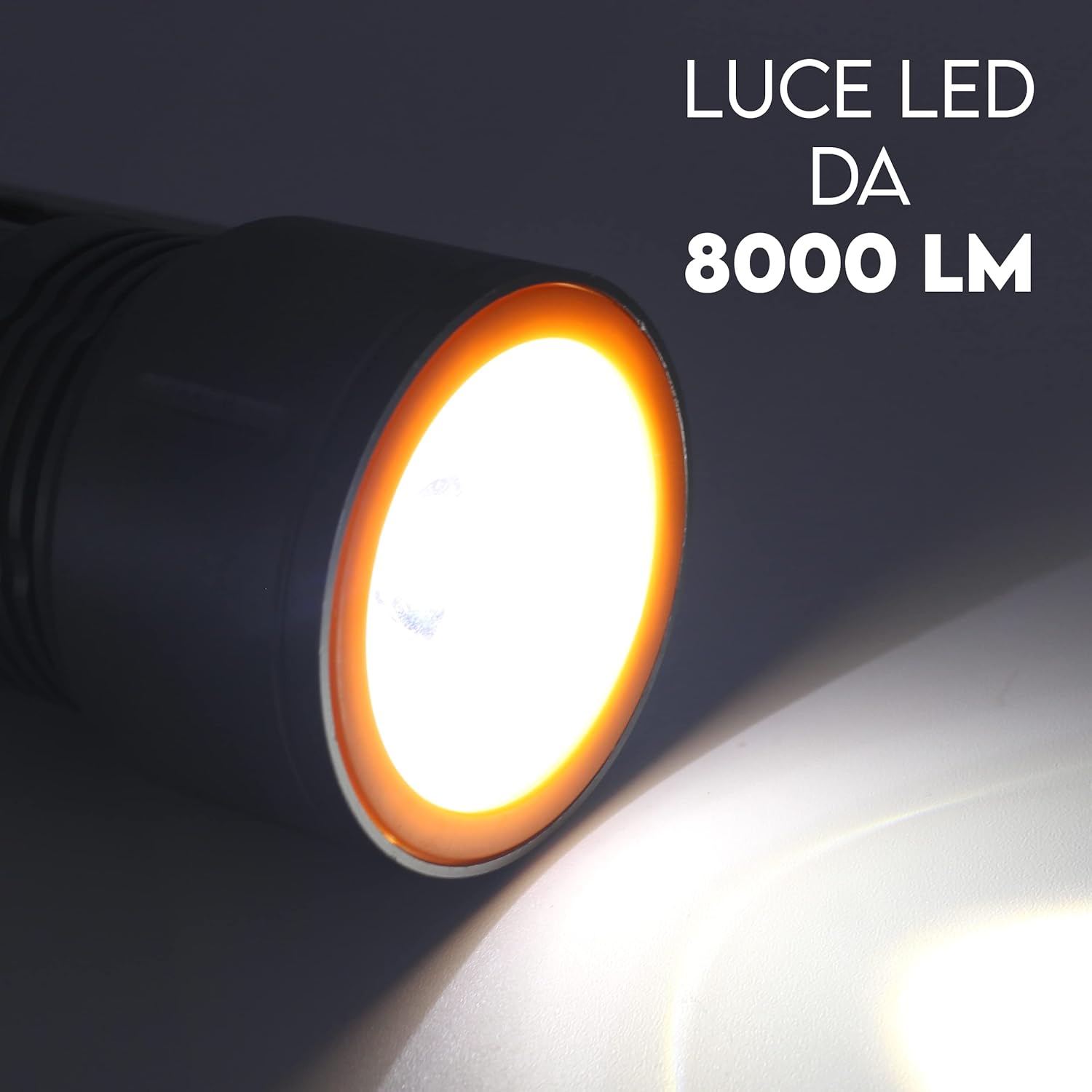 The powerful LED tactical flashlight is the lamp that you can always carry with you on your excursions, external activities, outdoor flashlight. You can also use it as a camping and hiking light. It is made with high quality materials, with LED technology that offers a maximum brightness of 8000 lumens.