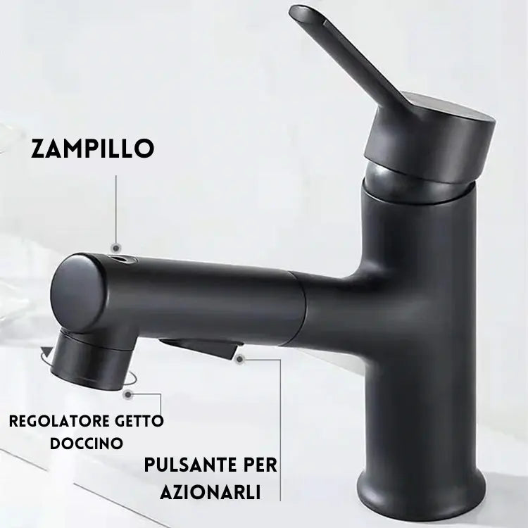 Rubinetto Bagno Nero con Doccetta Estraibile e Miscelatore Monocomando