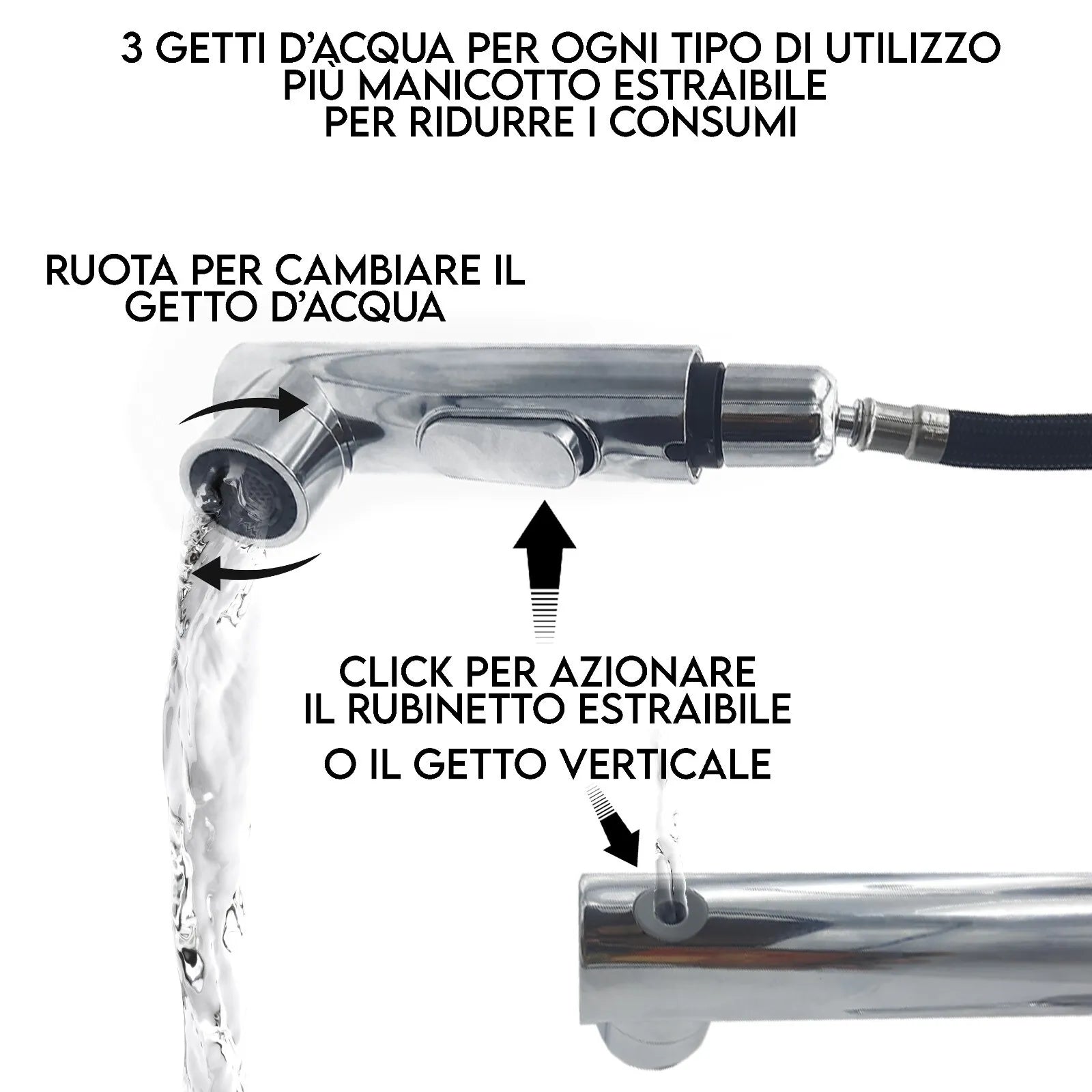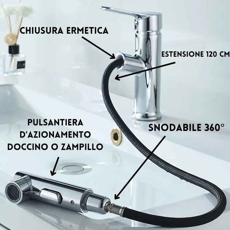 - FUNZIONALITÀ ESTRAIBILE: La doccetta estraibile offre una maggiore flessibilità e praticità per lavare il lavabo o i capelli.