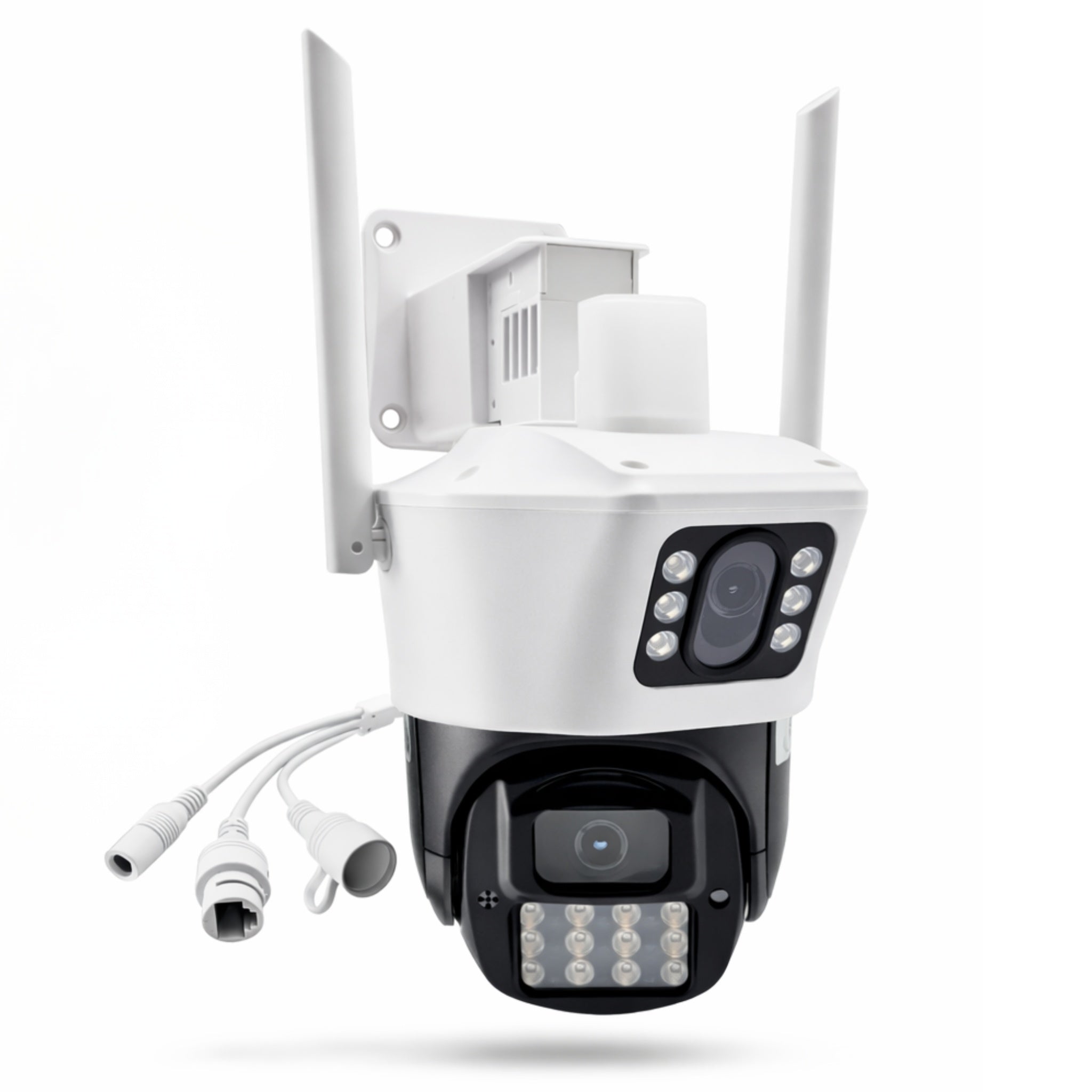 The Outdoor Wi-Fi camera offers high-quality surveillance performance with UHD resolution and enhanced night vision up to 30 meters. Thanks to the 355° rotation and the double lens, it widely covers every corner of your property. With Wi-Fi connection and wireless application, it is easy to control wherever you are. Weatherproof with IP65 waterproofing and equipped with an Ethernet LAN connection for reliable connectivity. Installation is simple with the included screw kit.