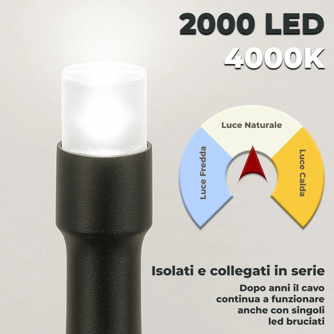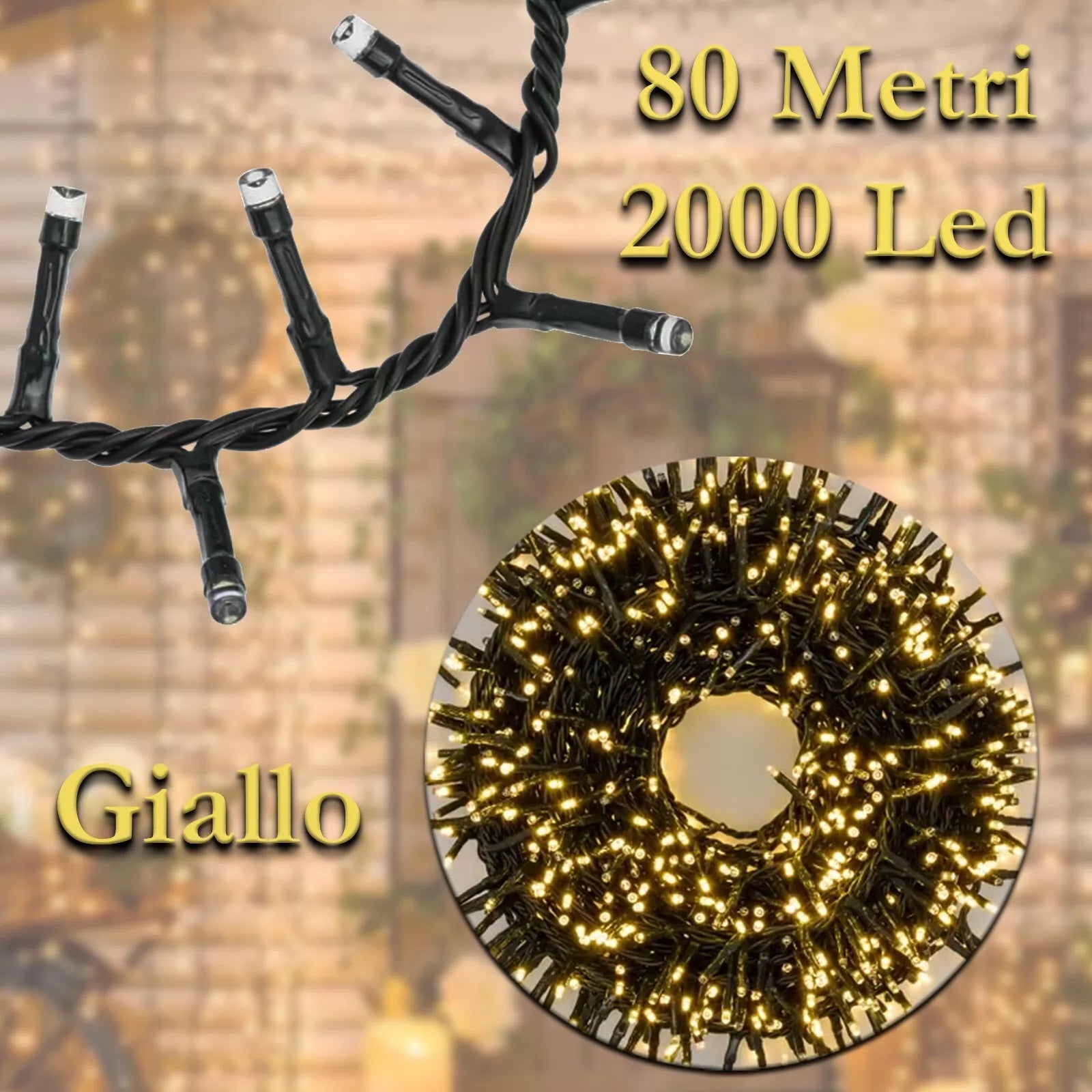 - ILLUMINAZIONE POTENTE: 2000 LED luminosi distribuiti su 80 metri garantiscono un'illuminazione brillante e uniforme, perfetta per decorazioni natalizie sia interne che esterne.