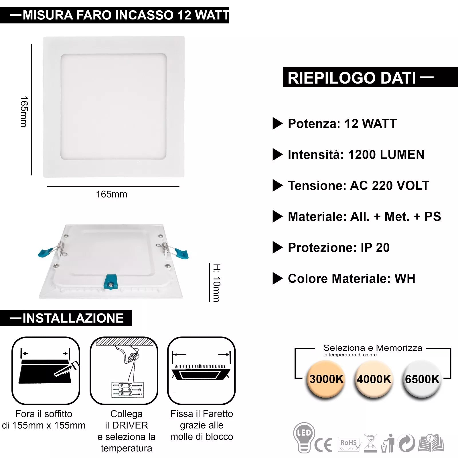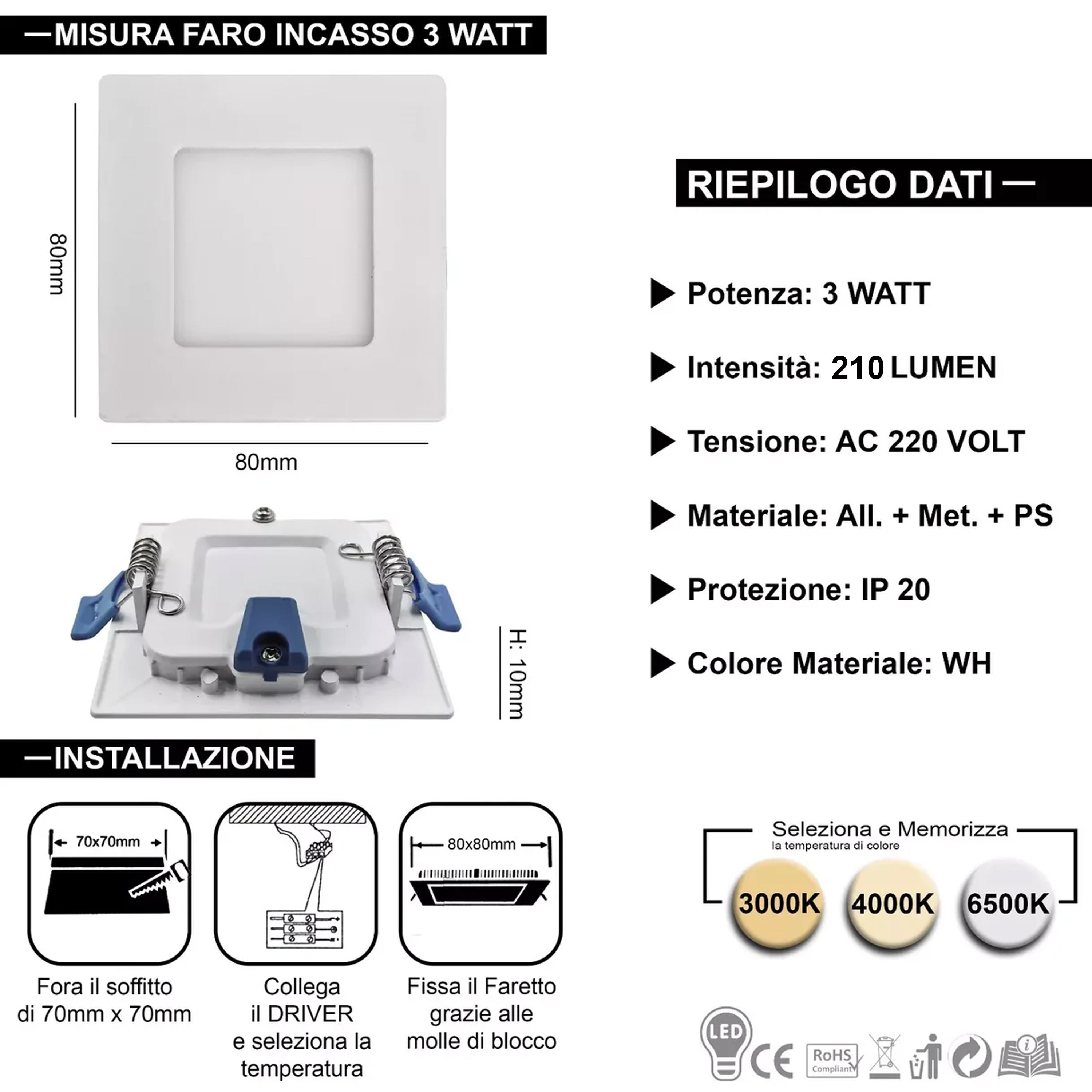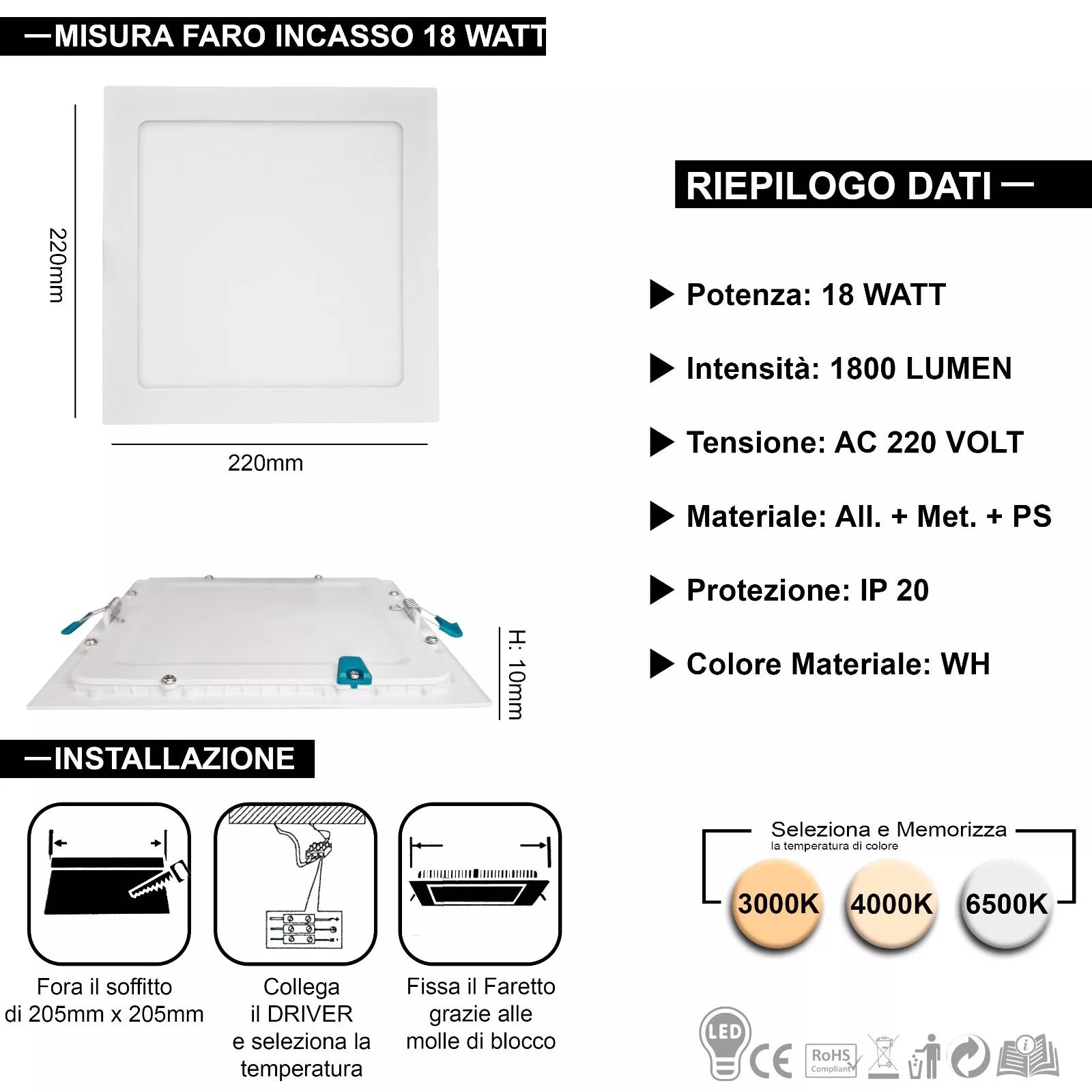 - MULTI-WATTAGGIO: Disponibile in diverse potenze (3W, 6W, 12W, 18W, 24W) per adattarsi a qualsiasi esigenza di illuminazione.