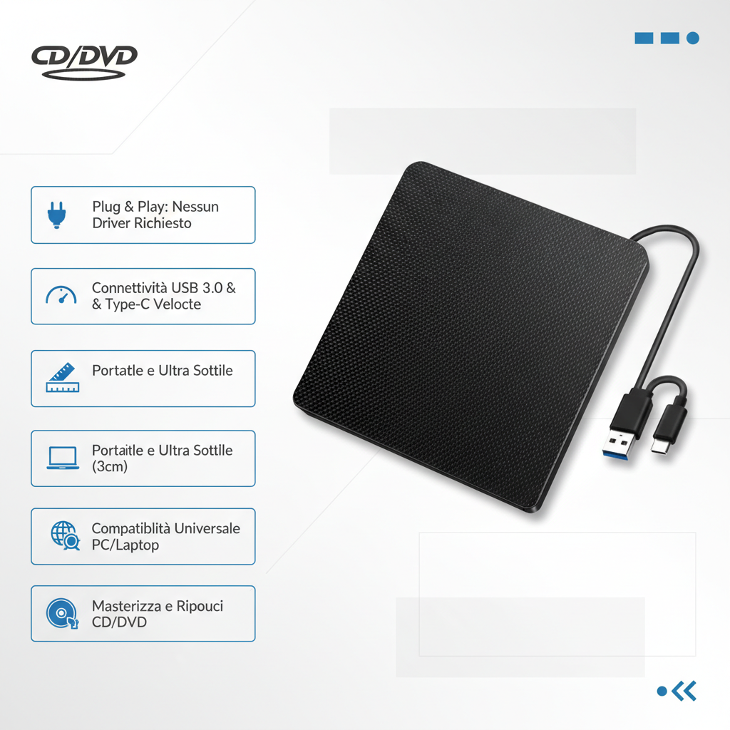 Unità CD DVD Esterna USB 3.0 Portatile Plug & Play
