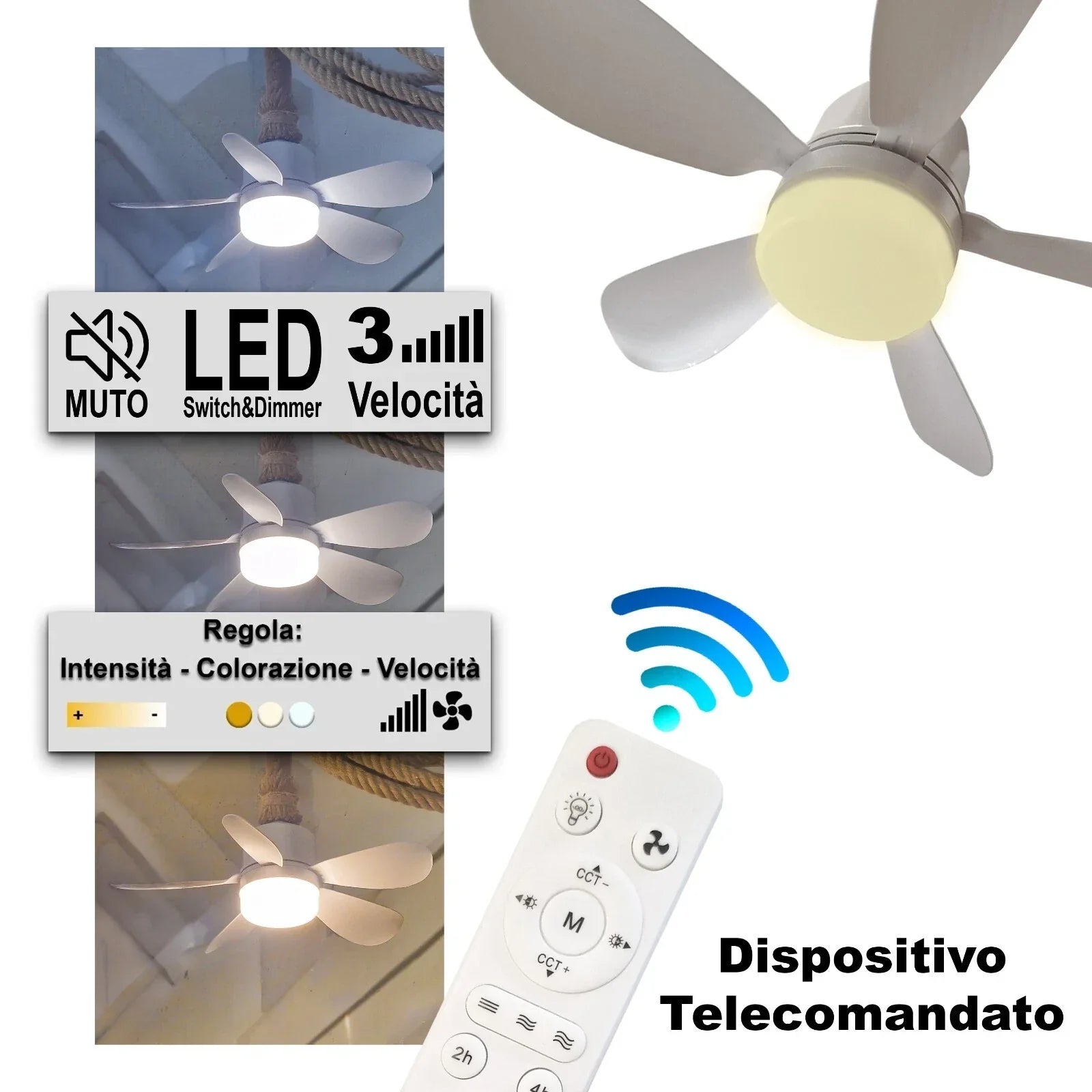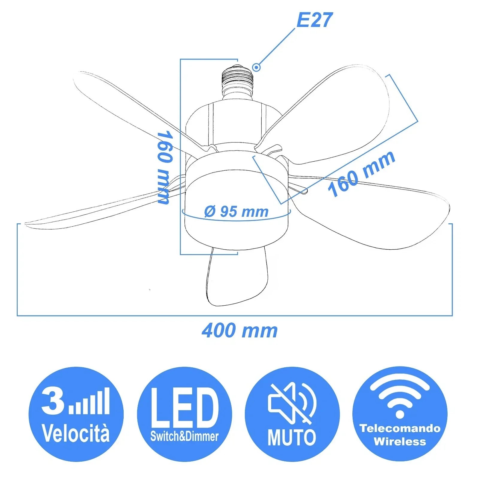 Ventilatore Lampada E27 Silenzioso con LED Dimmer e Telecomando