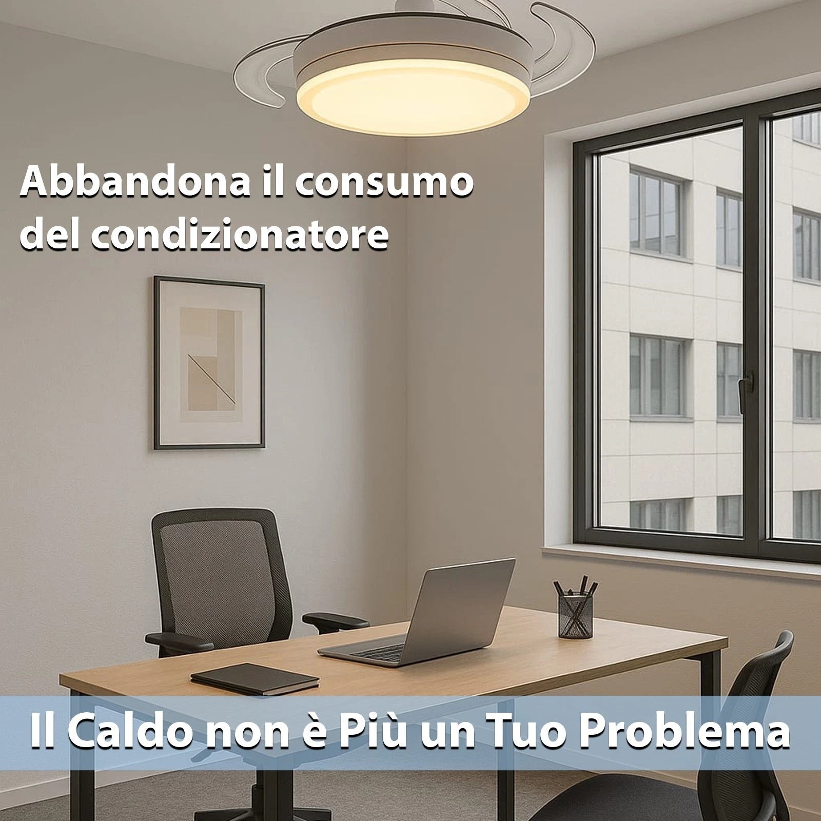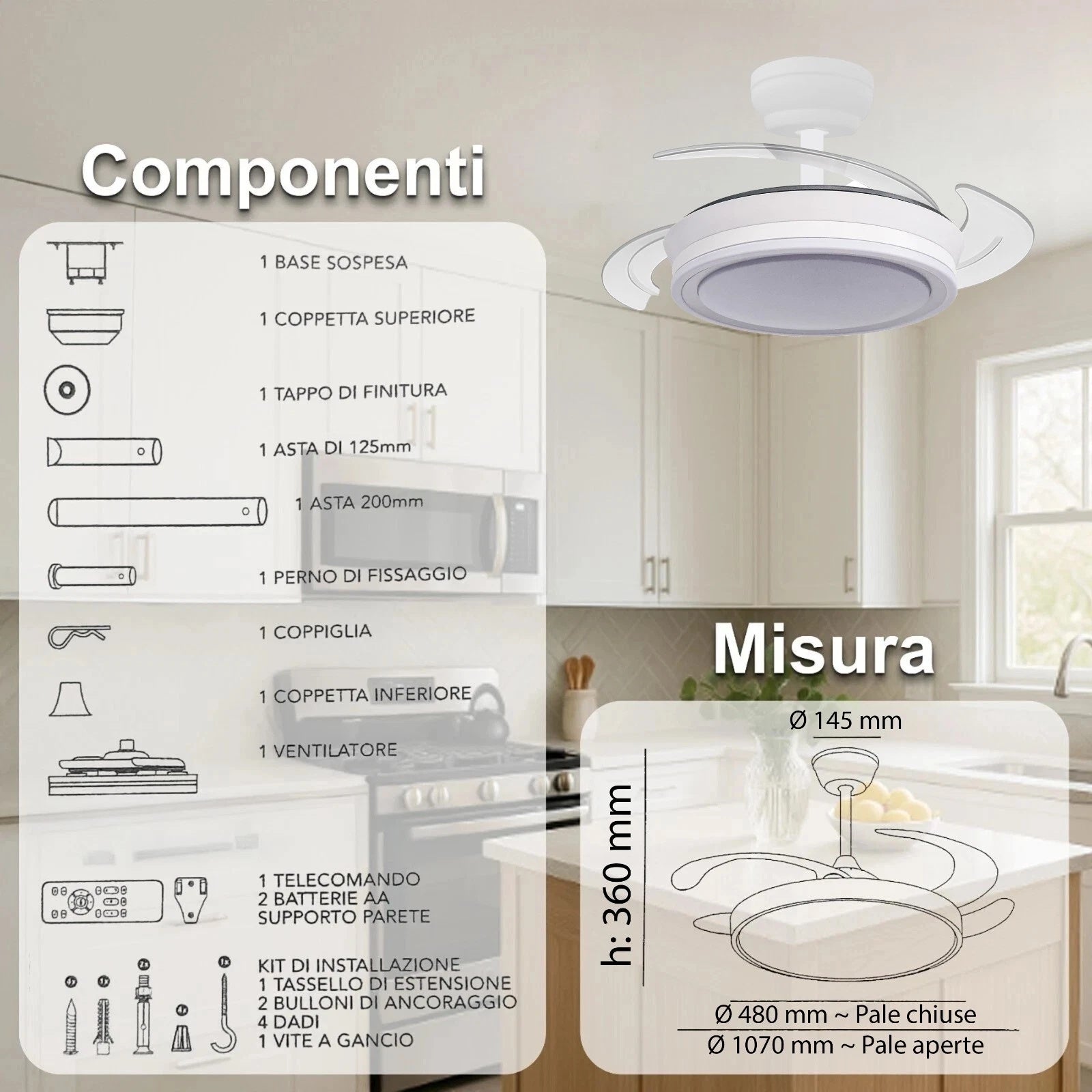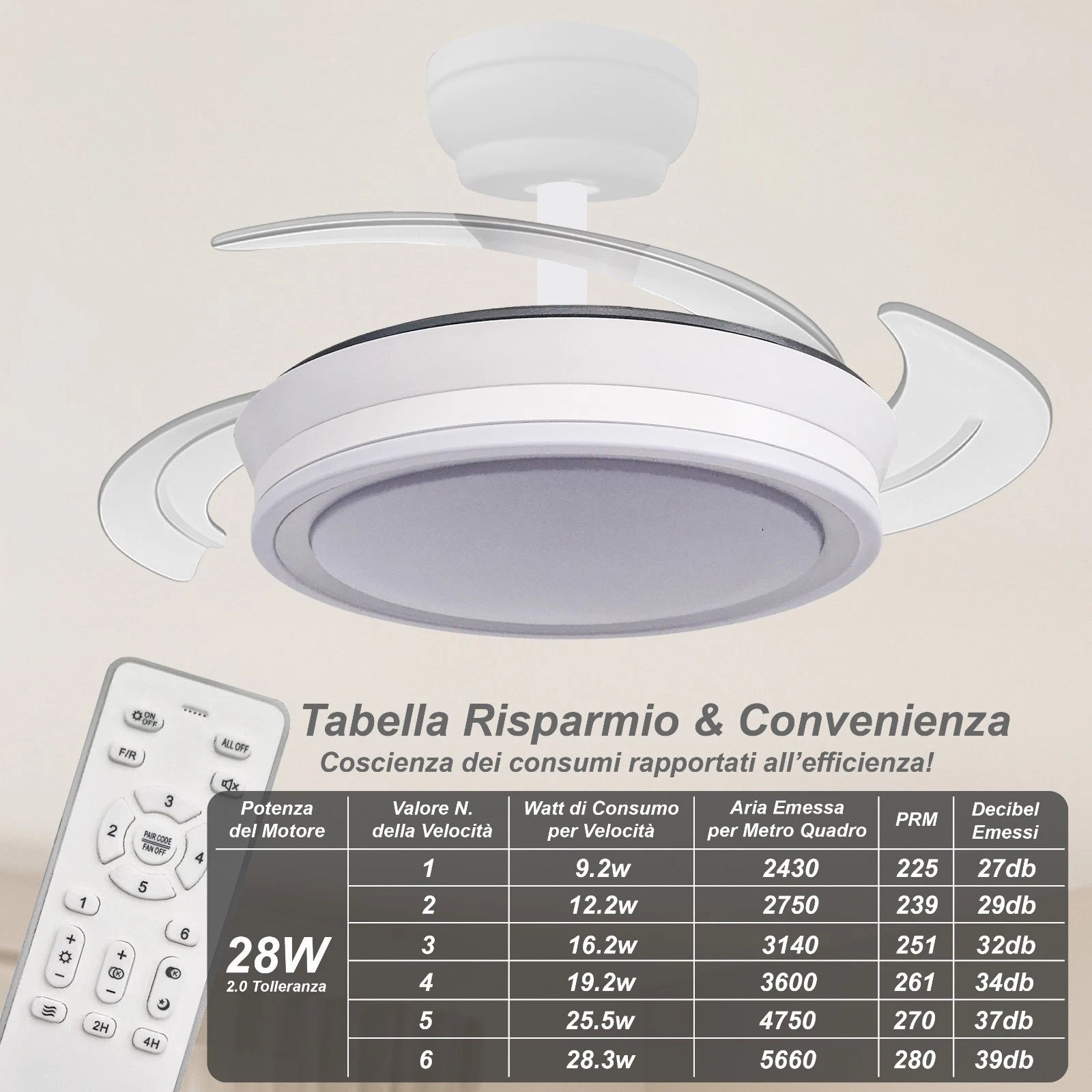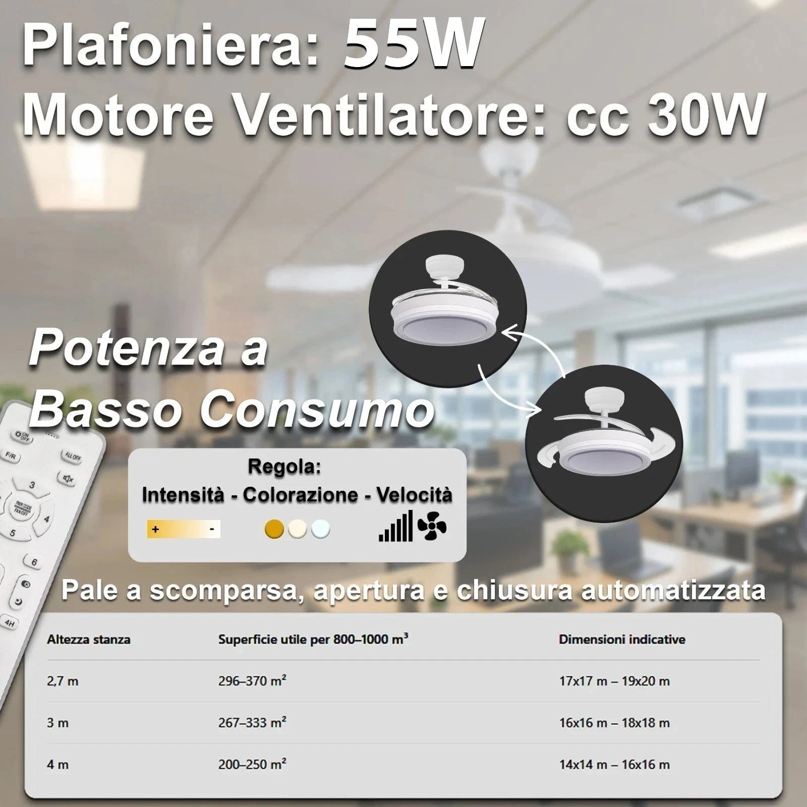 Ventilatore Soffitto LED Dimmerabile 55W con Pale Retrattili e Telecomando