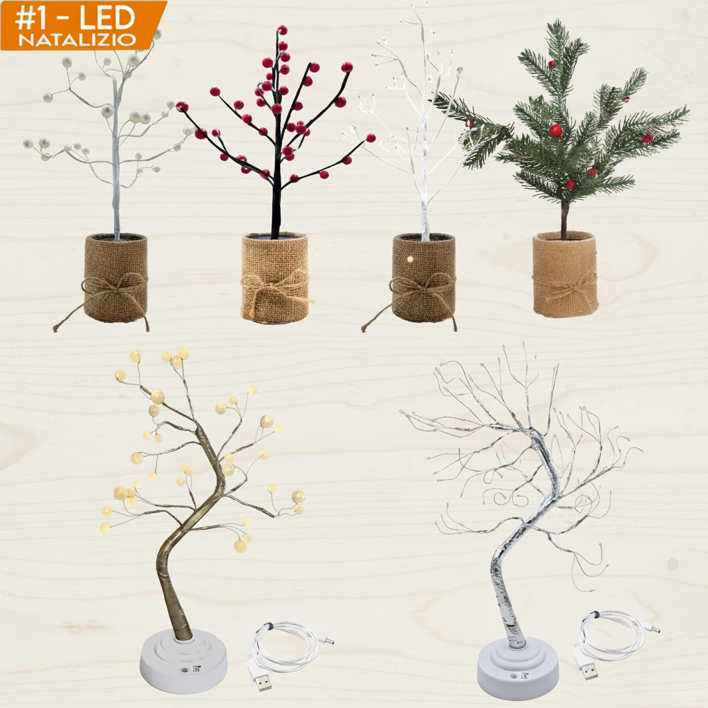 Albero di Natale LED 35/45cm Luminoso da Tavolo USB o Batteria Decorazioni Natalizie