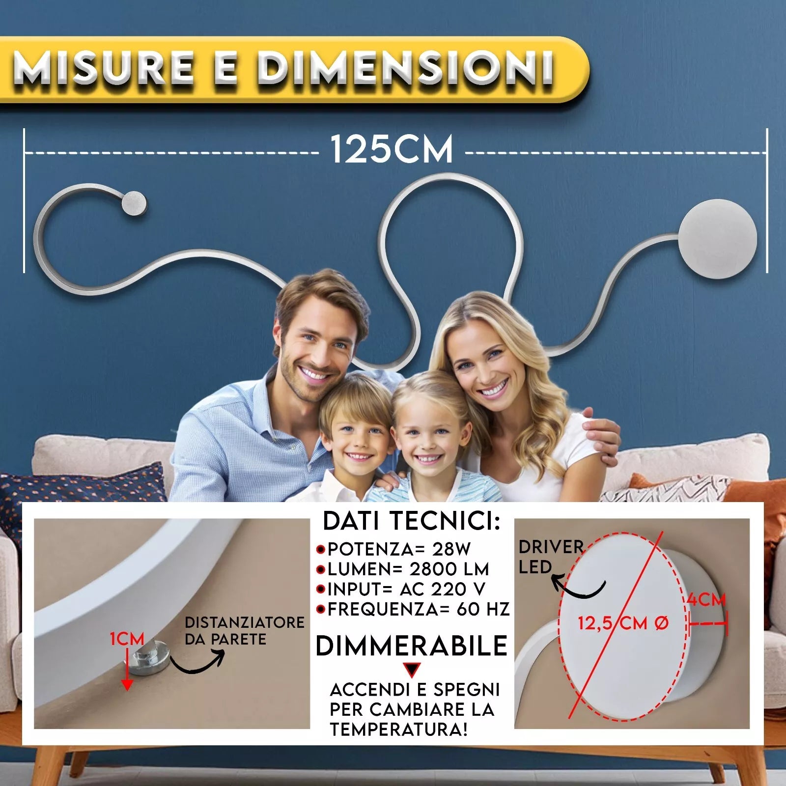 Applique LED Moderno Curvo 28W, Dimmerabile 3000K-6500K, Eleganza e Versatilità
