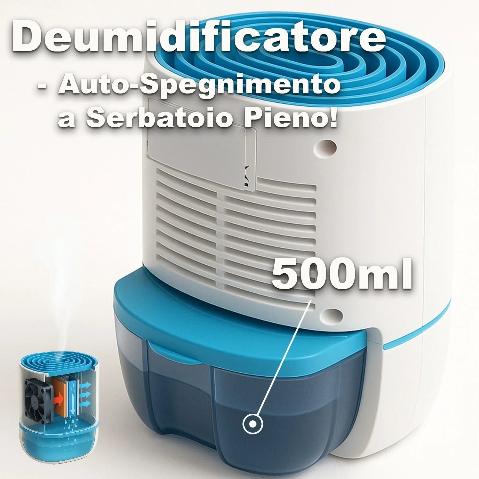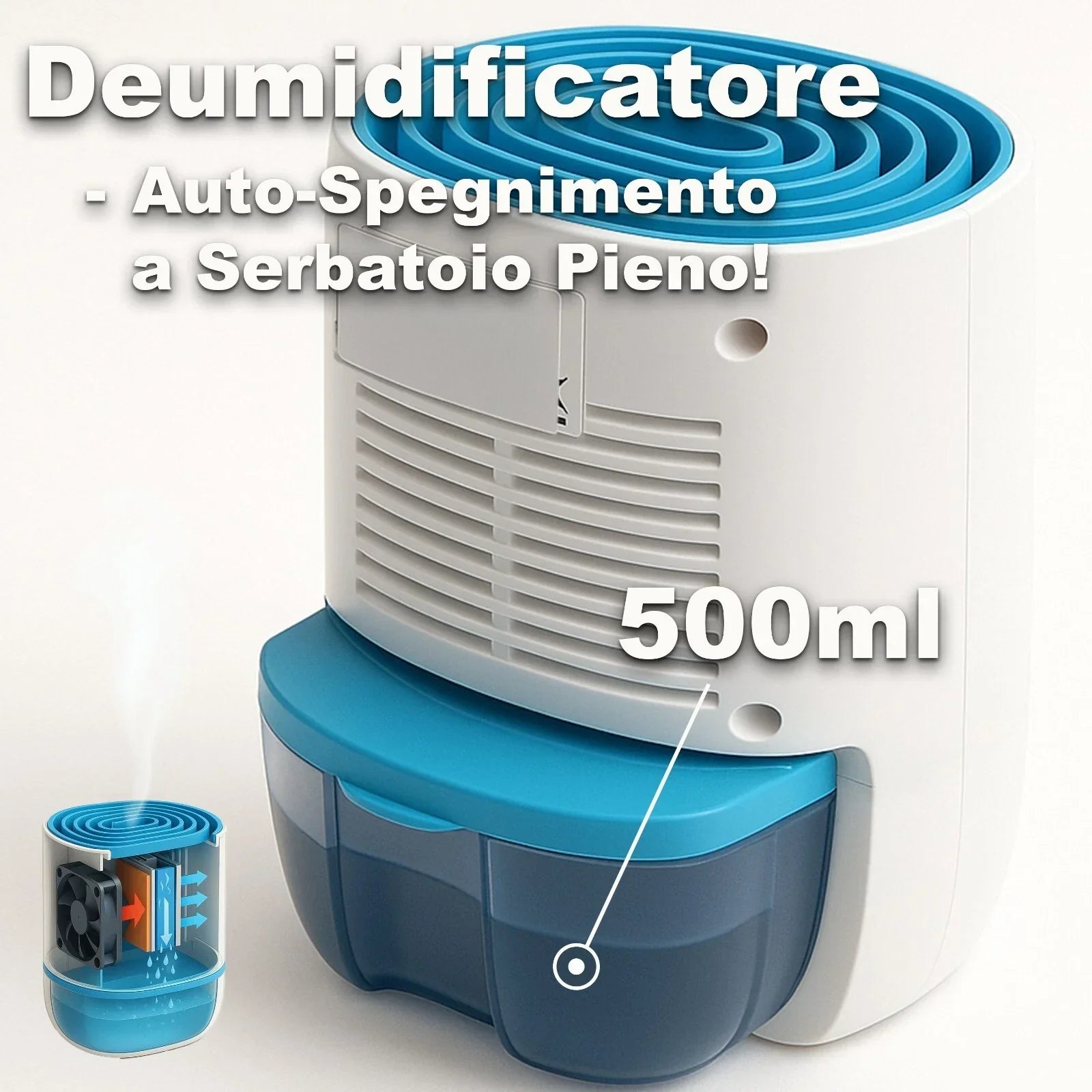 Deumidificatore d’Aria Silenzioso 22W 500ml Compatto per Interni