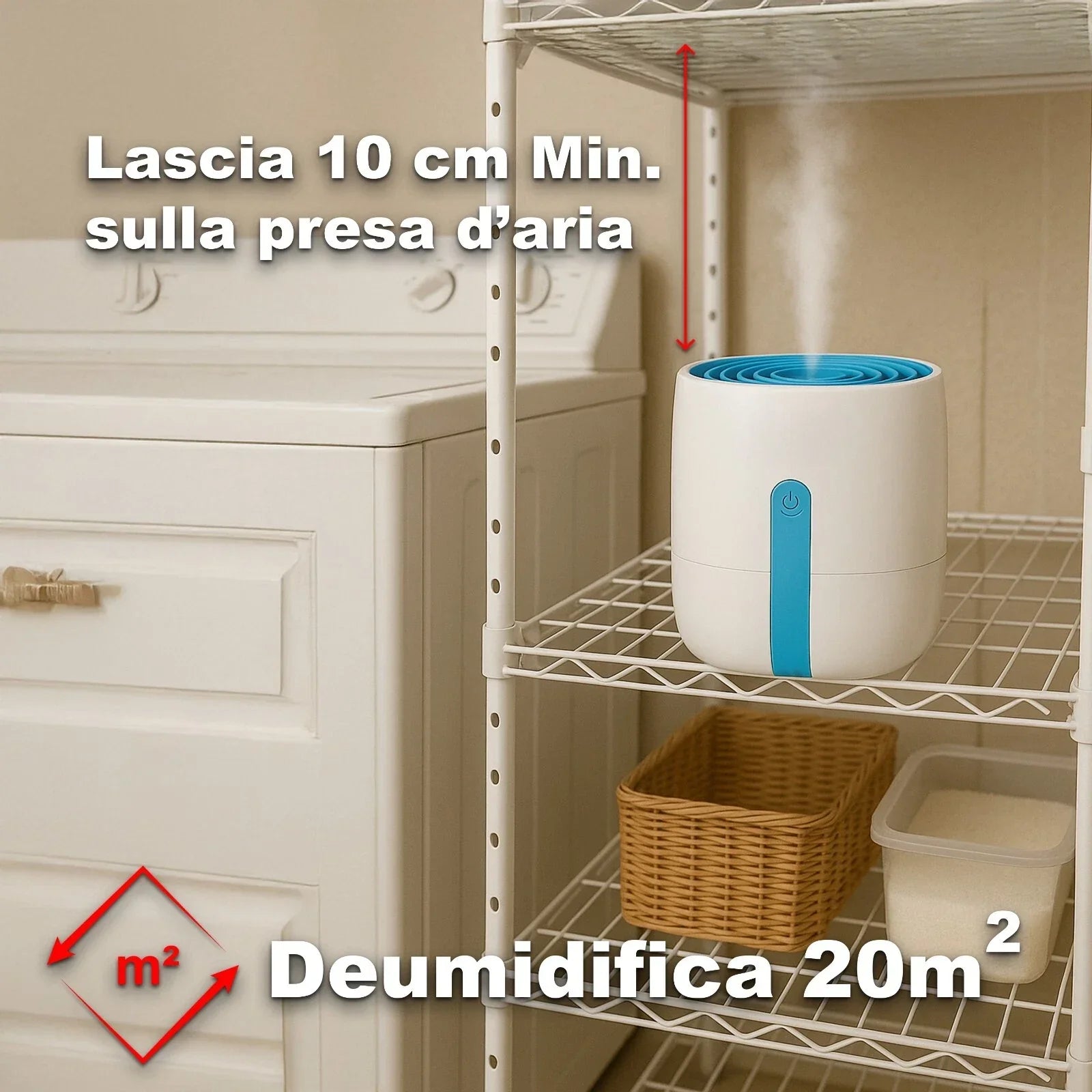 Plug & Play: pronto all’uso senza installazione, basta collegarlo e inizia a deumidificare.