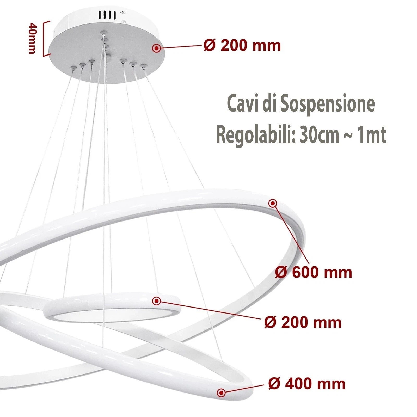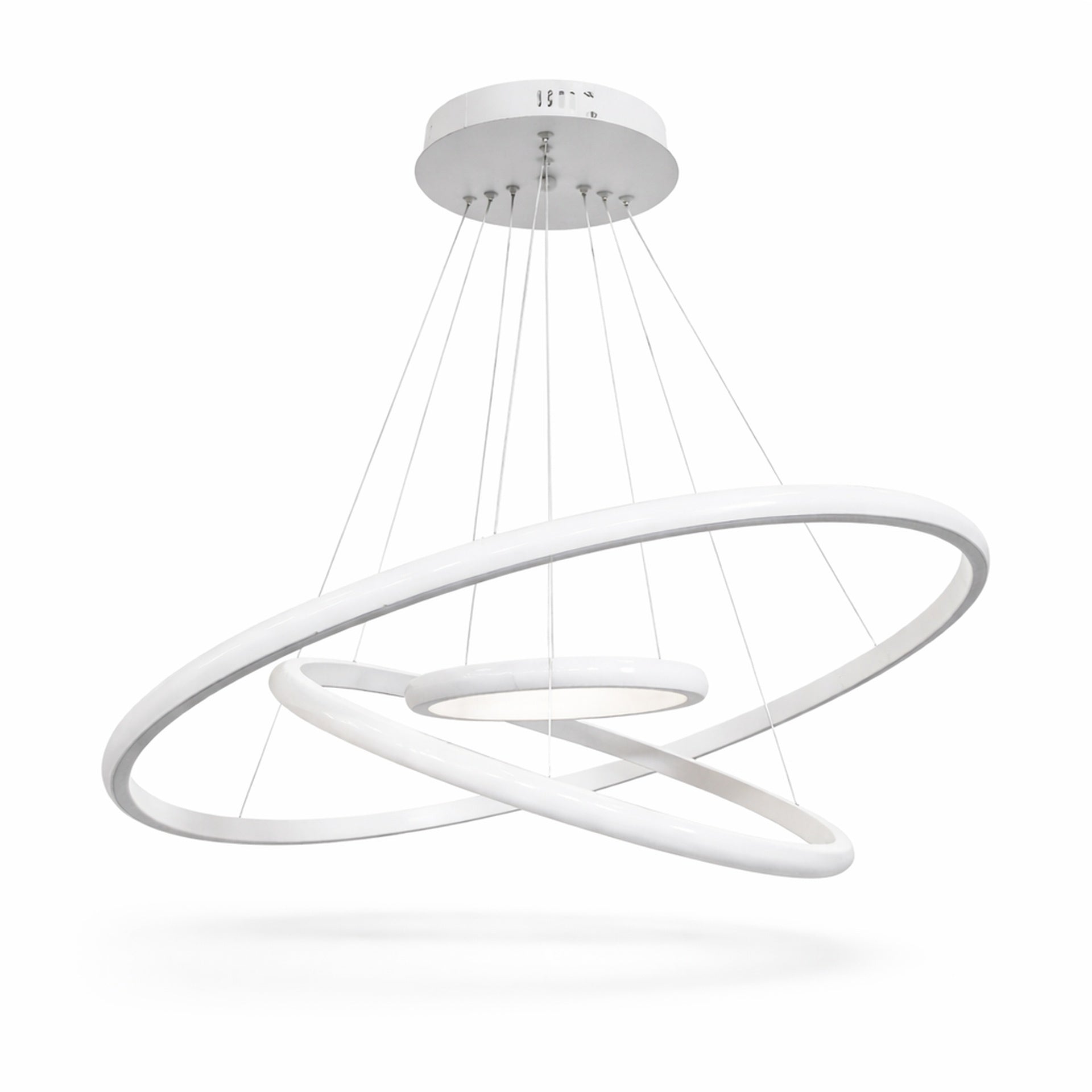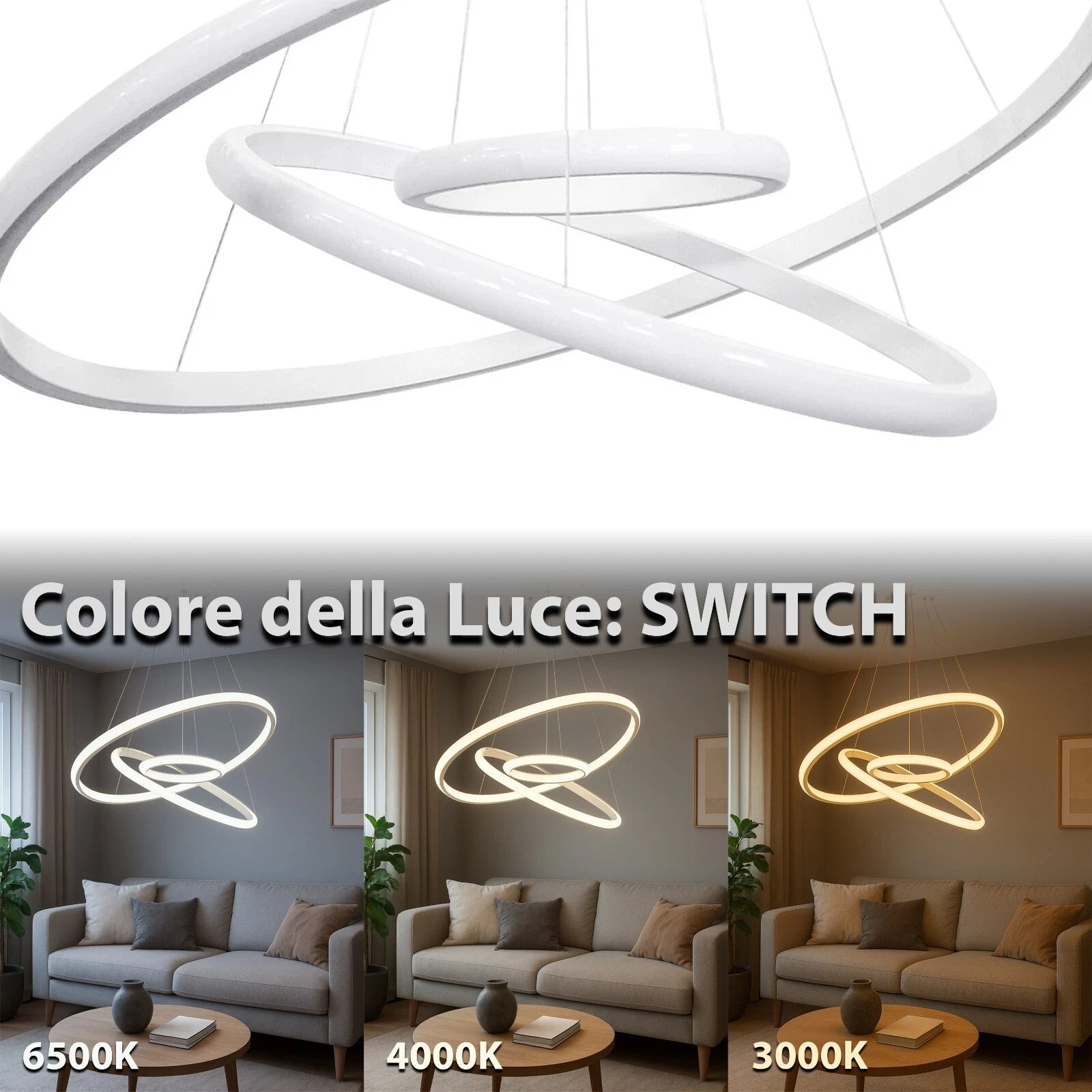 Design moderno a tre anelli che dona eleganza e un tocco futuristico a qualsiasi ambiente.