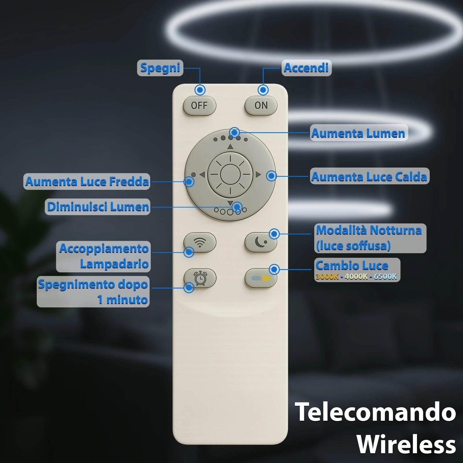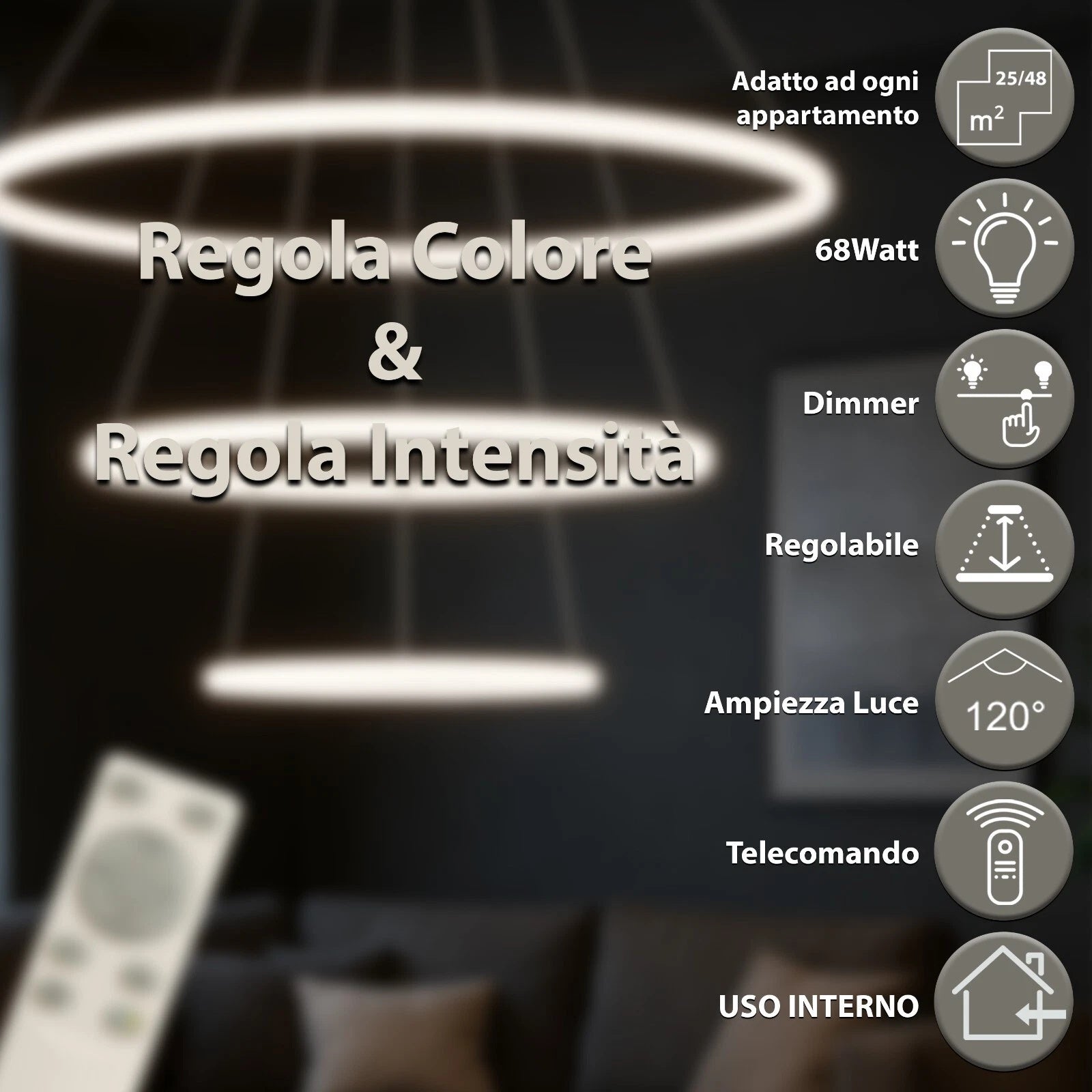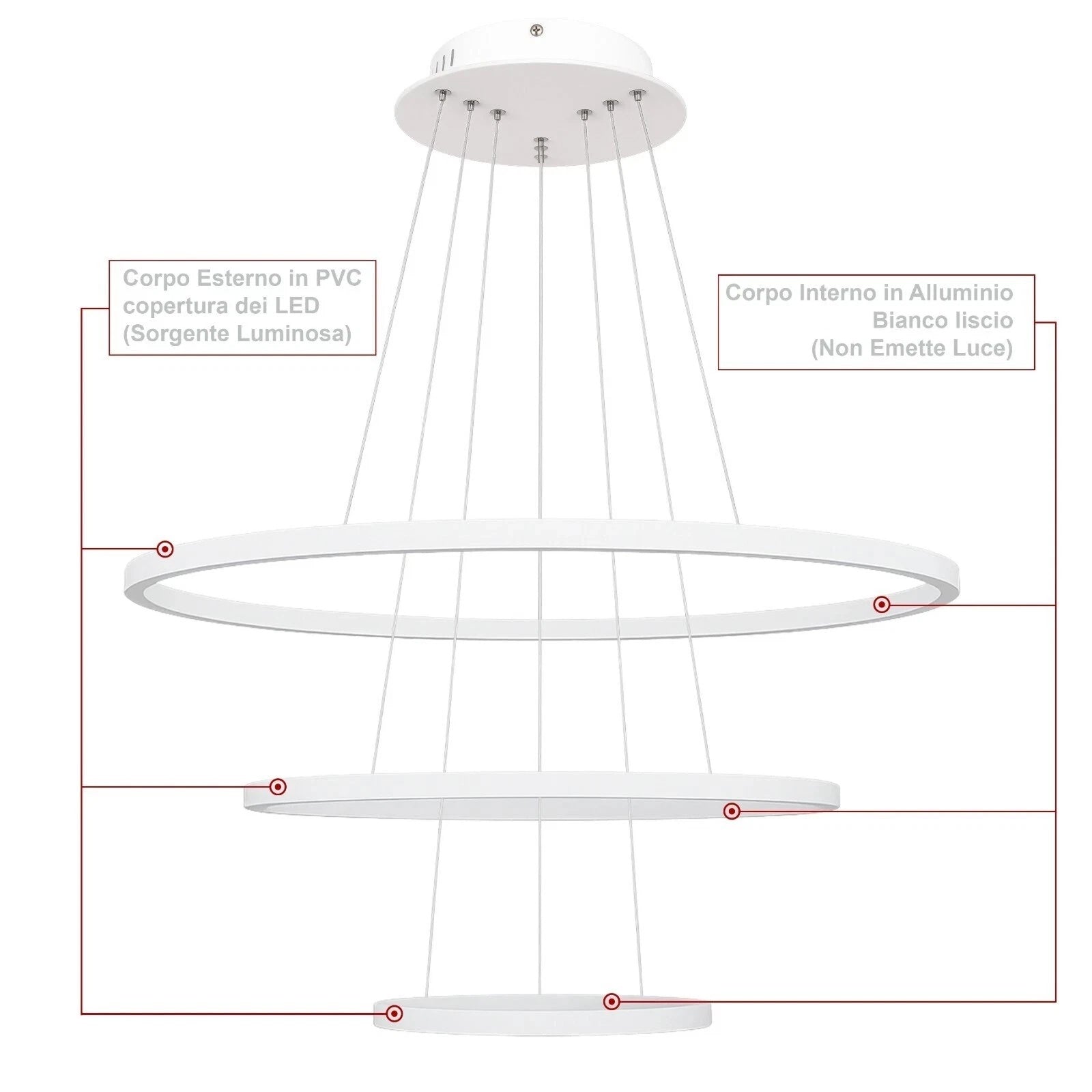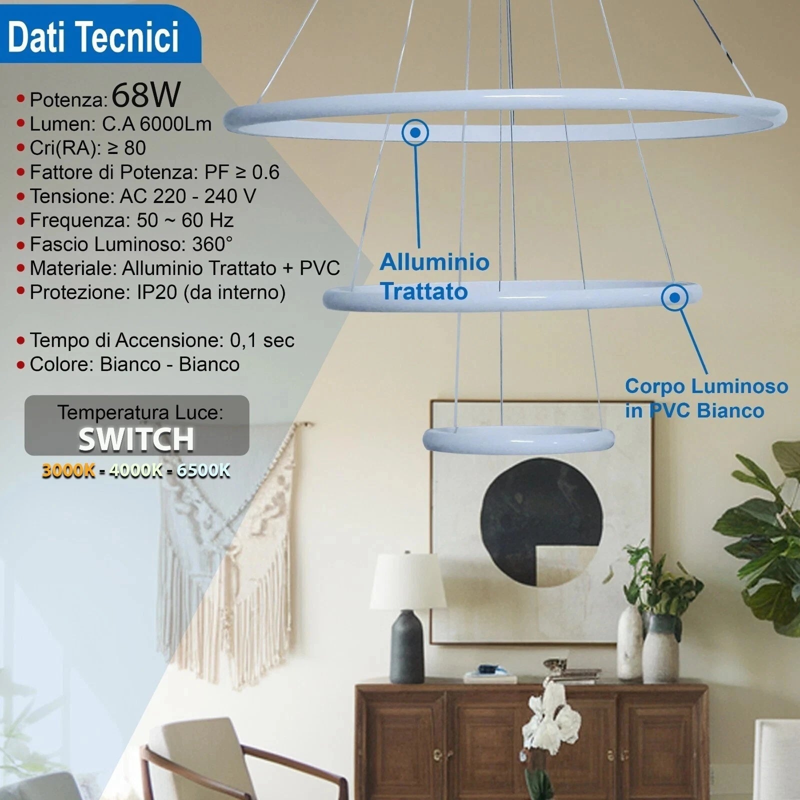Design moderno a tre anelli che dona eleganza e un tocco futuristico a qualsiasi ambiente.