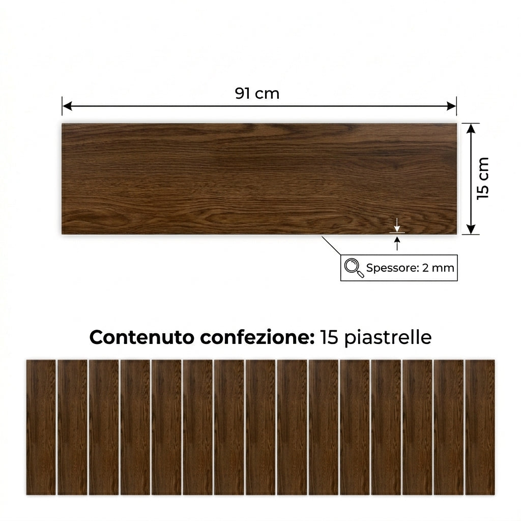 Pavimento PVC Adesivo Effetto Quercia Scura 2mq